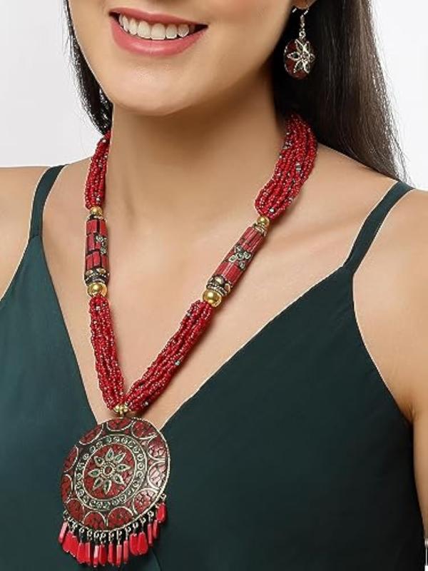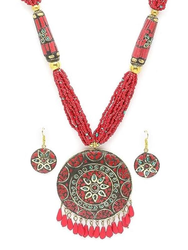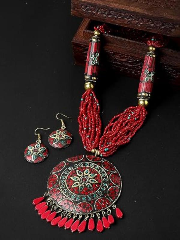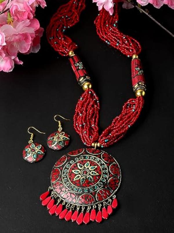 Explore the latest Tibetan pendant necklace set that showcases traditional elegance. Perfect for adding a touch of style to your outfit.
