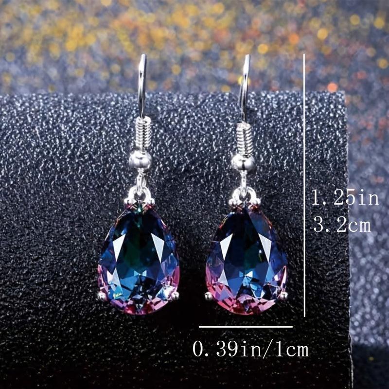 Elegant earrings featuring artificial crystal water drops and colorful synthetic gemstones, perfect for adding a touch of sparkle to any outfit.