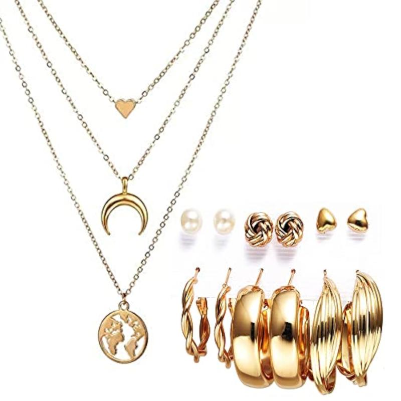 Elevate your look with this stylish jewelry set designed for women. This set includes a necklace, earrings, and bracelet.