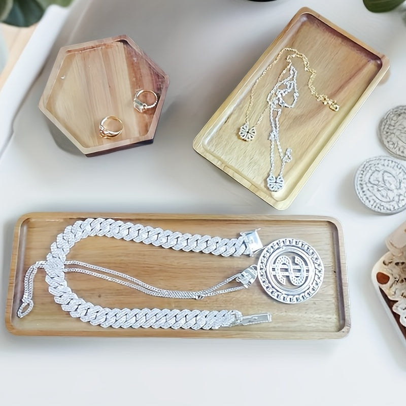 Keep your jewelry organized with this stylish wooden tray. Perfect for storing rings, necklaces, earrings, and watches without the risk of losing them.