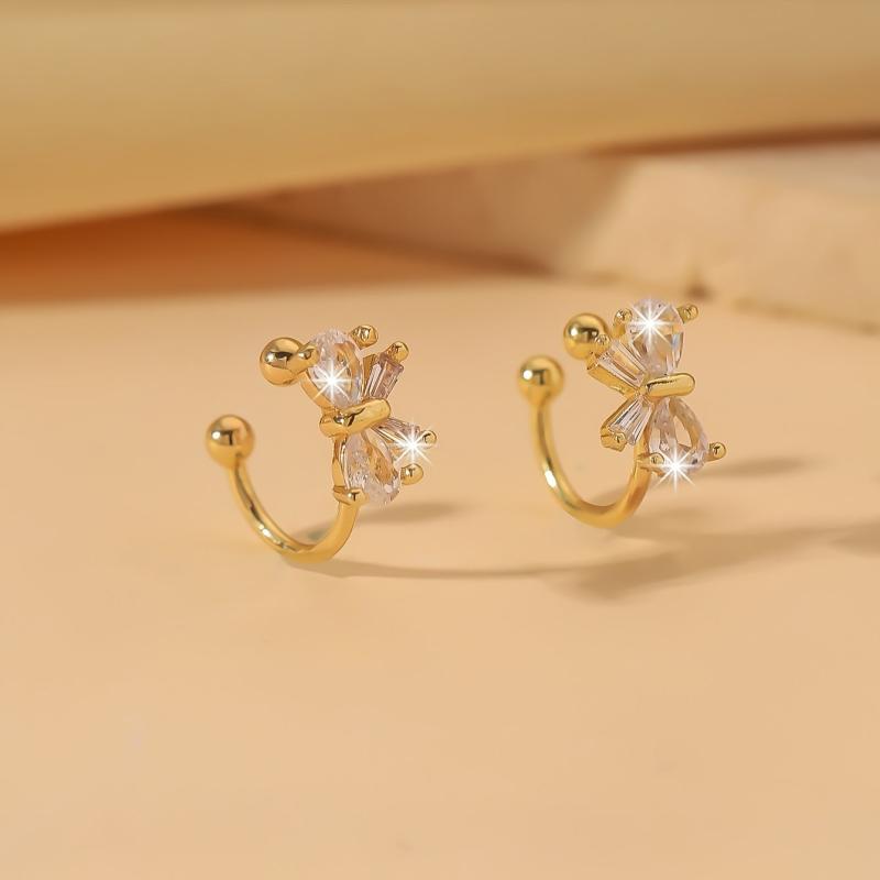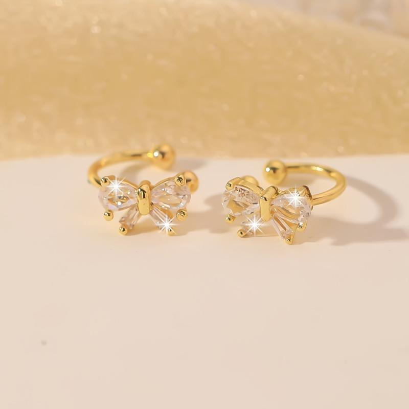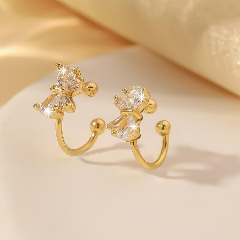 Elevate your style with these fashionable synthetic zirconia bow earrings designed for women. Perfect for adding a touch of elegance to any outfit.