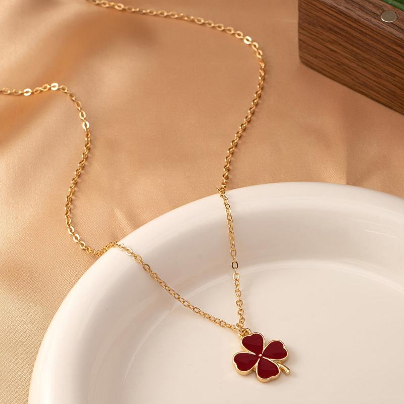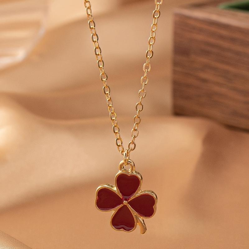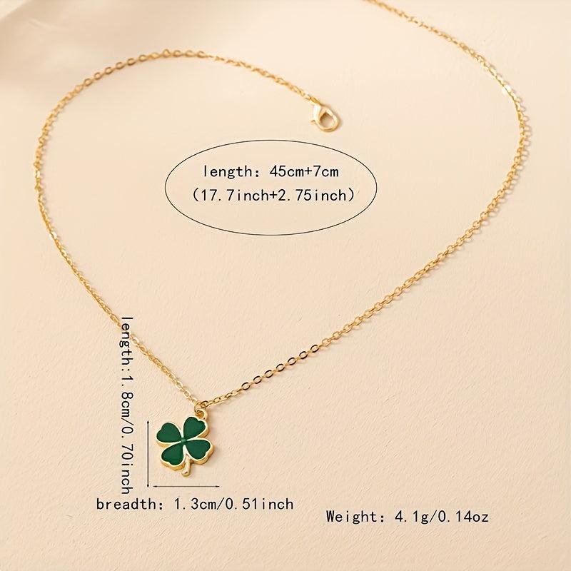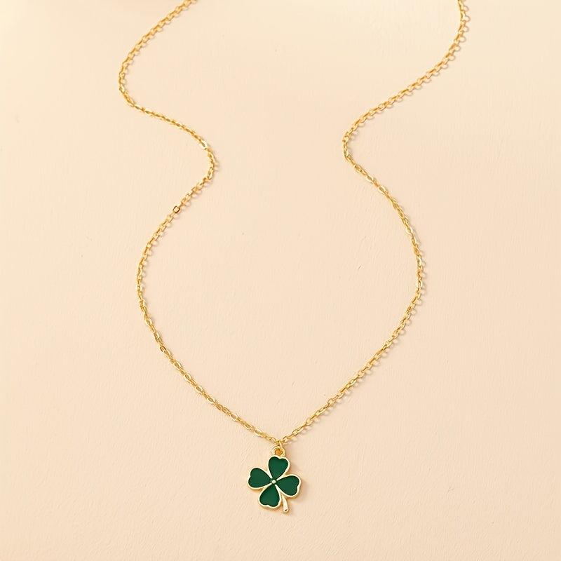 This charming necklace features a four leaf clover pendant with elegant green enamel detailing on a golden tone chain, perfect for adding a touch of nature-inspired style to your look.