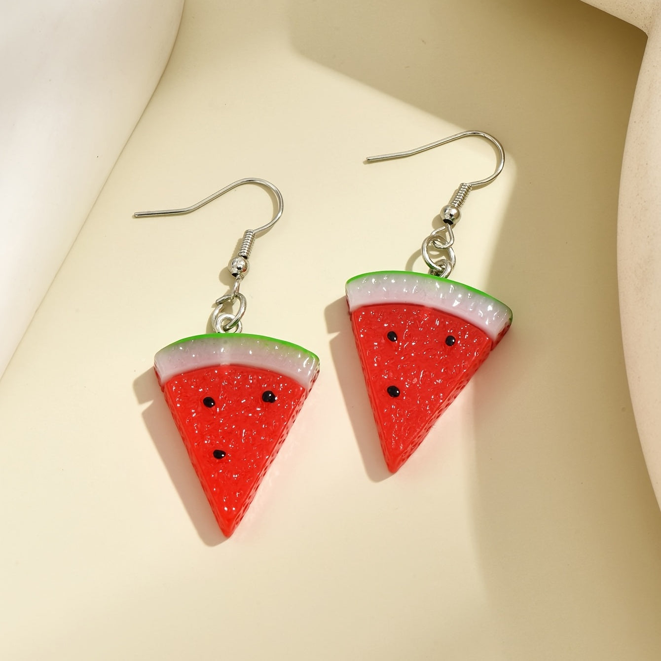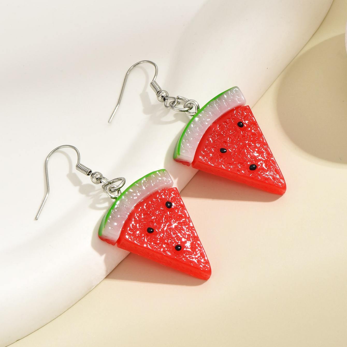 Add a touch of holiday style with these personality summer fruit watermelon slices earrings.
