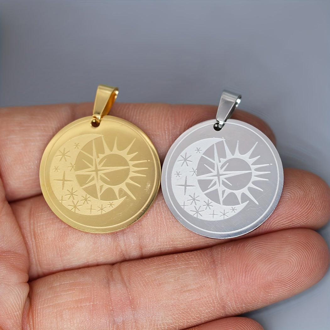 Add a celestial touch to your jewelry crafts with this stainless steel sun and moon charm. Perfect for necklaces, bracelets, and other accessories.