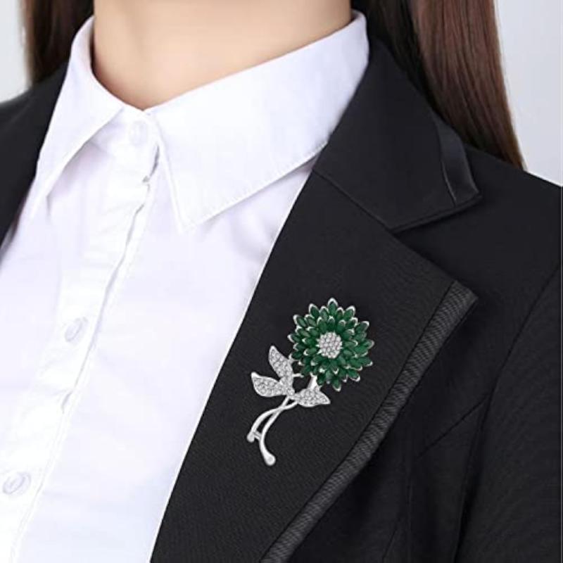Elegant sunflower brooch/lapel pin adorned with sparkling crystals and artificial pearls.