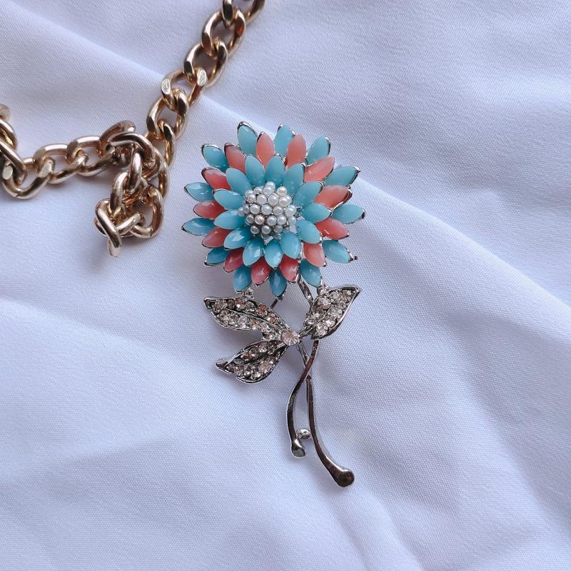 Stunning rhodium-plated sunflower brooch/lapel pin adorned with crystals and artificial pearls.