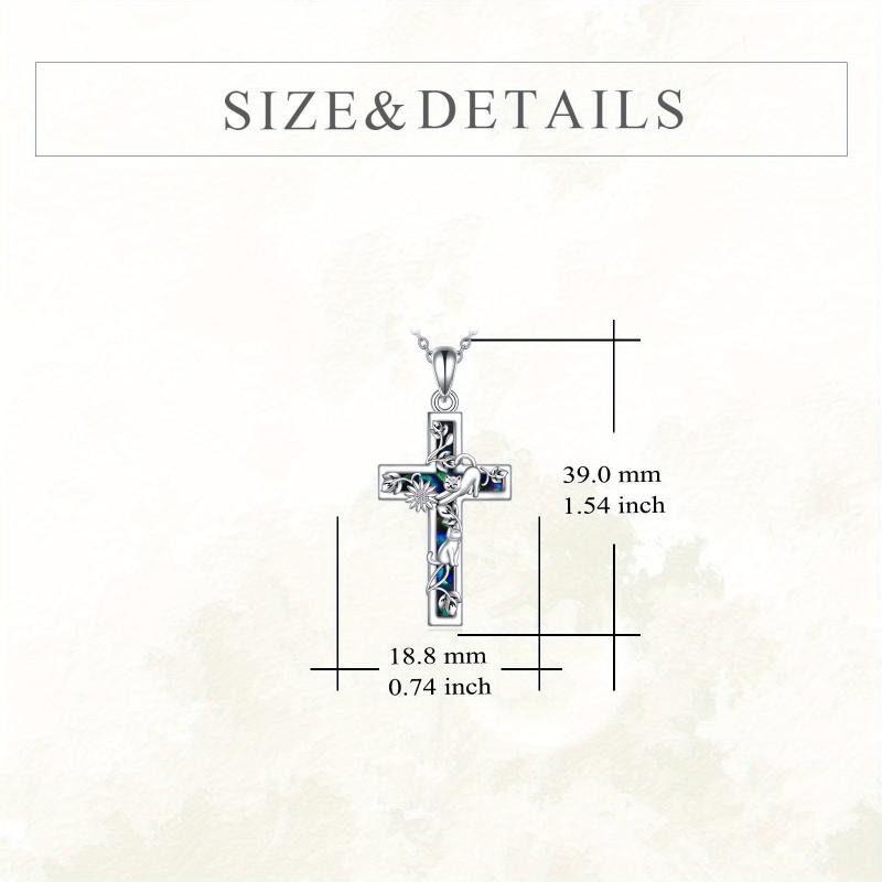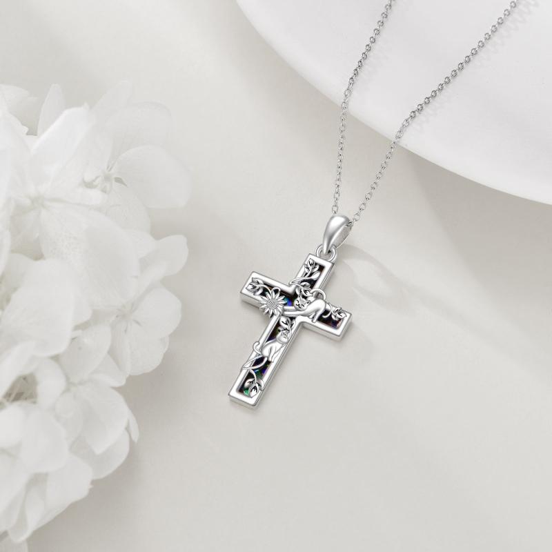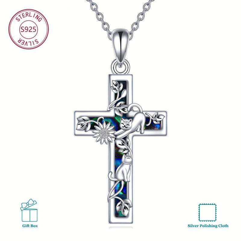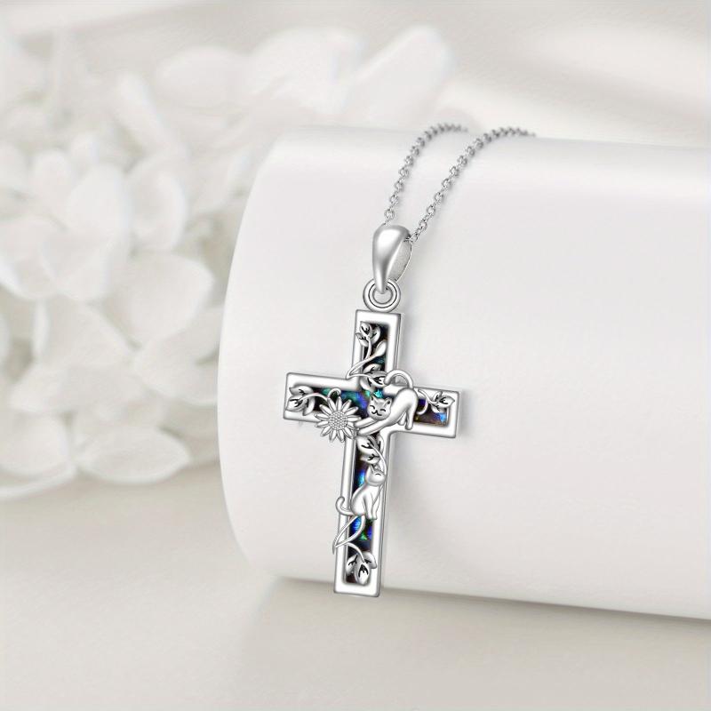 This beautiful sunflower cross necklace features a sterling silver cat cross pendant adorned with elegant abalone shell. Perfect for religious Christian baptism ceremonies or as a meaningful gift for her.