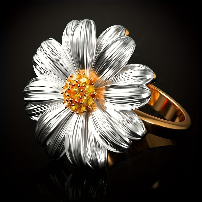 This beautiful sunflower and daisy ring is the perfect gift for birthdays, anniversaries, or any special occasion. It adds a touch of elegance to any outfit.