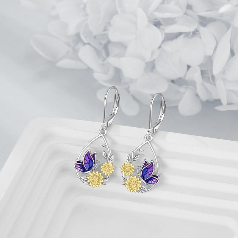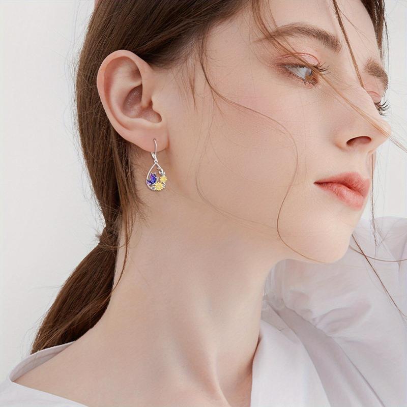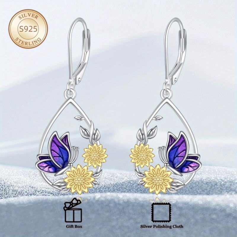These beautiful Sunflower Drop Butterfly Earrings are made of 925 sterling silver. They make a perfect gift for women.
