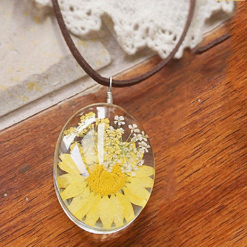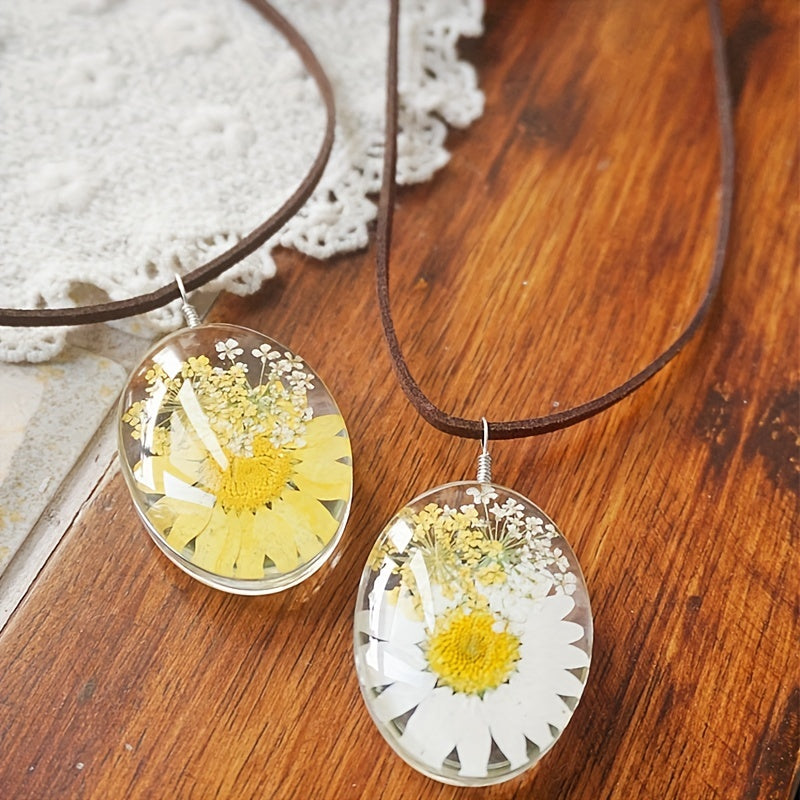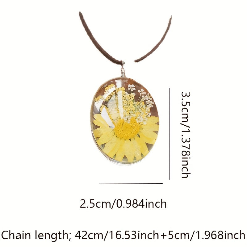 Add a touch of vintage charm with this sunflower necklace featuring a yellow daisy pendant. The embossed design adds a classic appeal to this beautiful piece of jewelry.