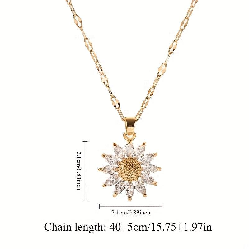 Shine with this stunning sunflower pendant featuring sparkling synthetic zirconia petals, perfect for parties or everyday wear. Ideal gift for Valentine's, birthdays, and anniversaries.