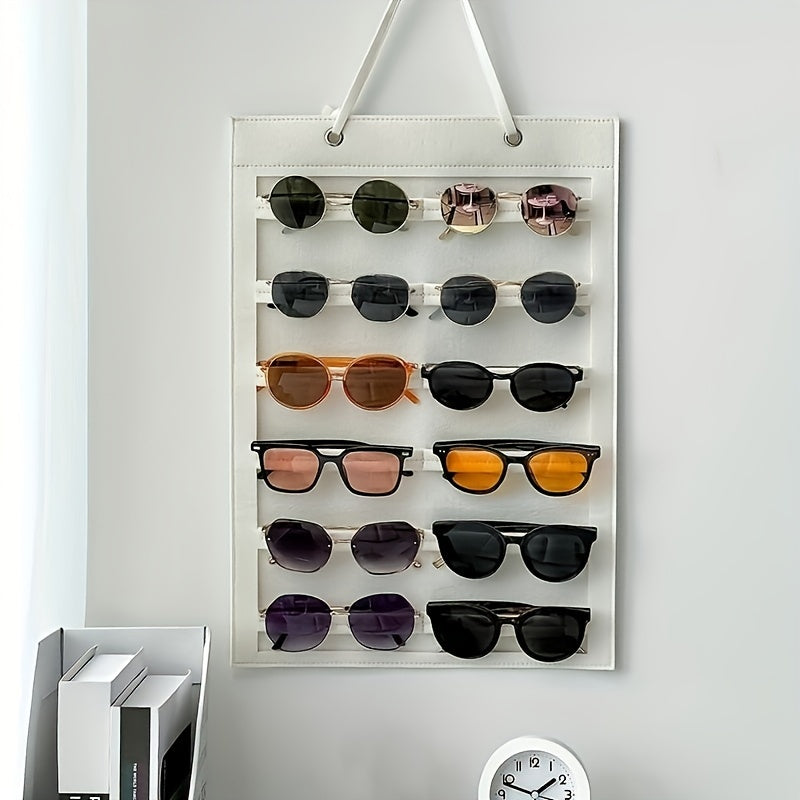 Keep your sunglasses organized and easily accessible with this versatile storage stand. Hang it on the wall for convenient placement.