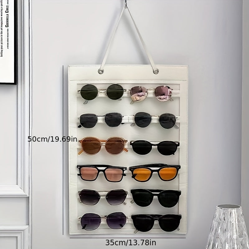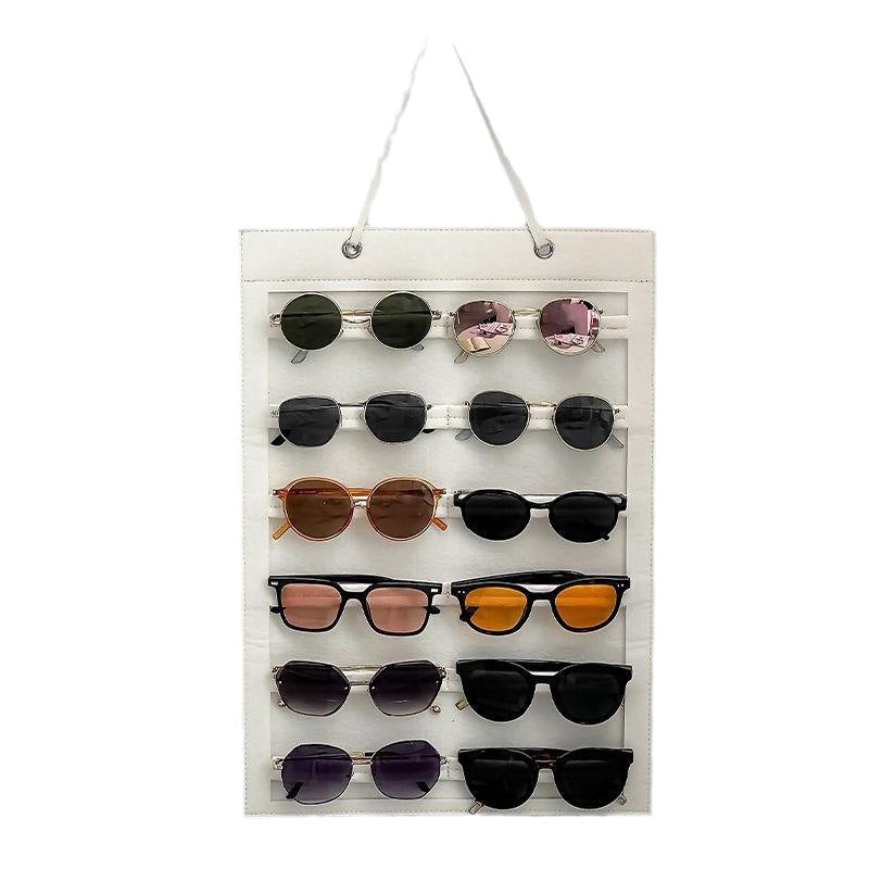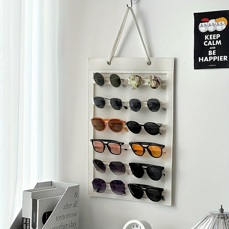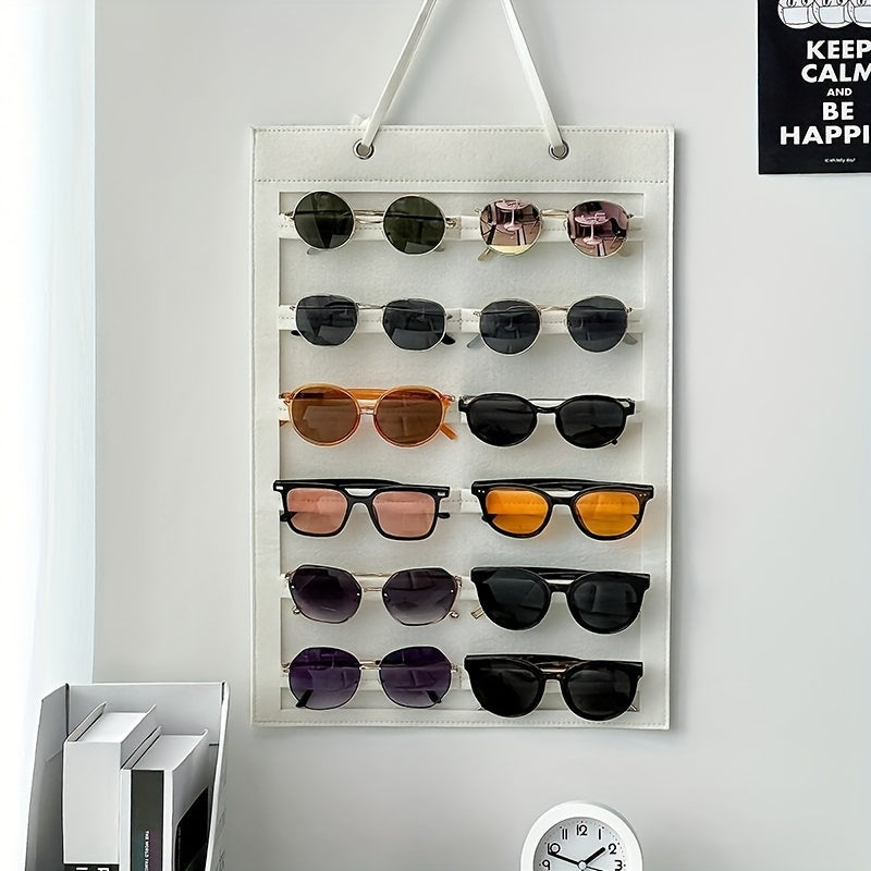 Keep your sunglasses organized and easily accessible with this wall mounted storage rack. Ideal for displaying and storing your favorite pairs.