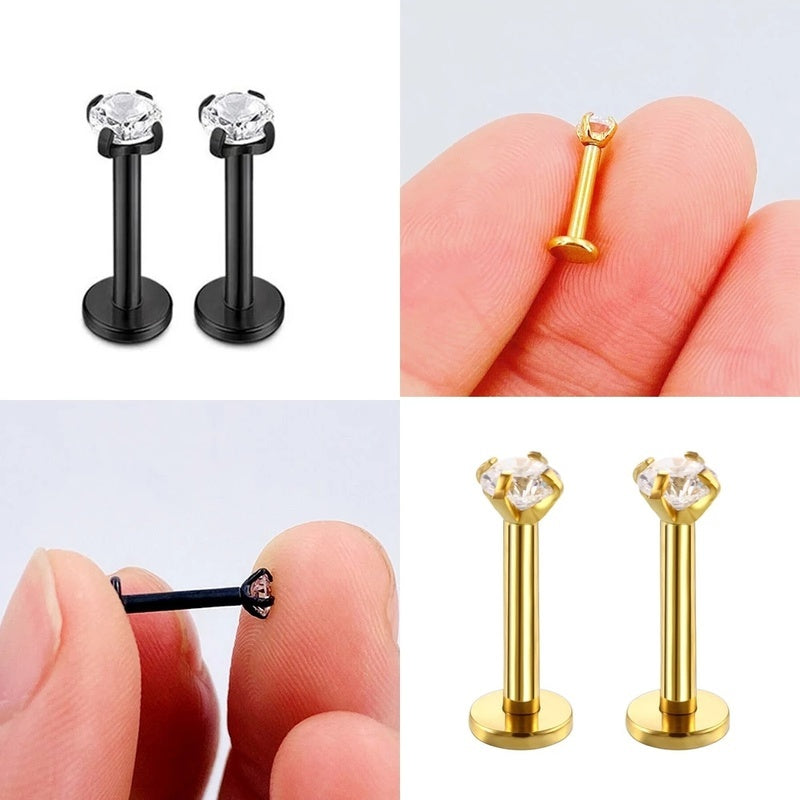 Add a touch of style to your piercings with these surgical steel rings featuring cubic zircon. Suitable for lip and ear piercings, these pairs are perfect for men.