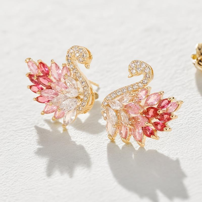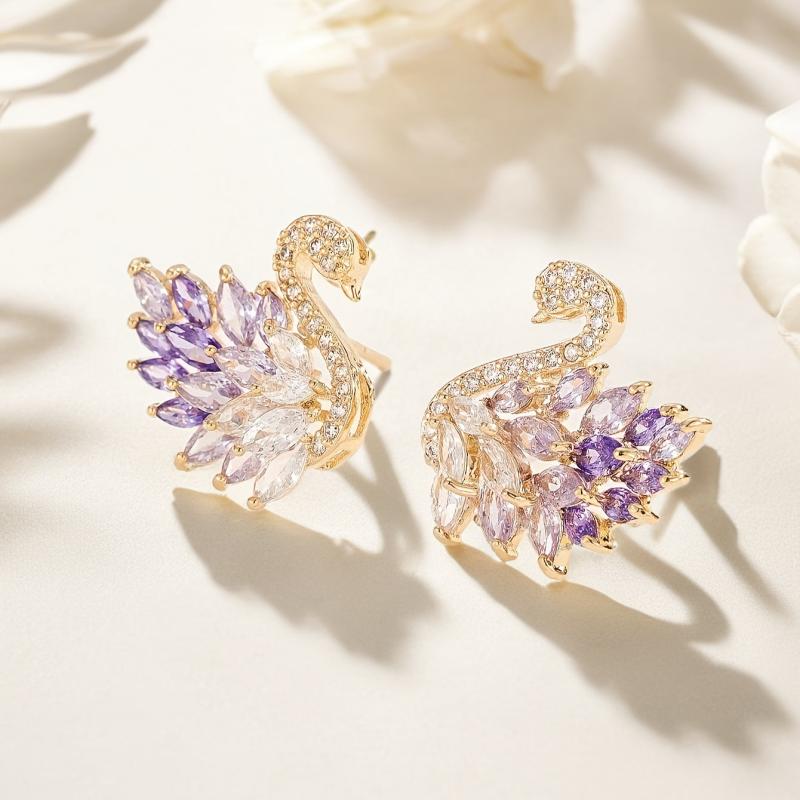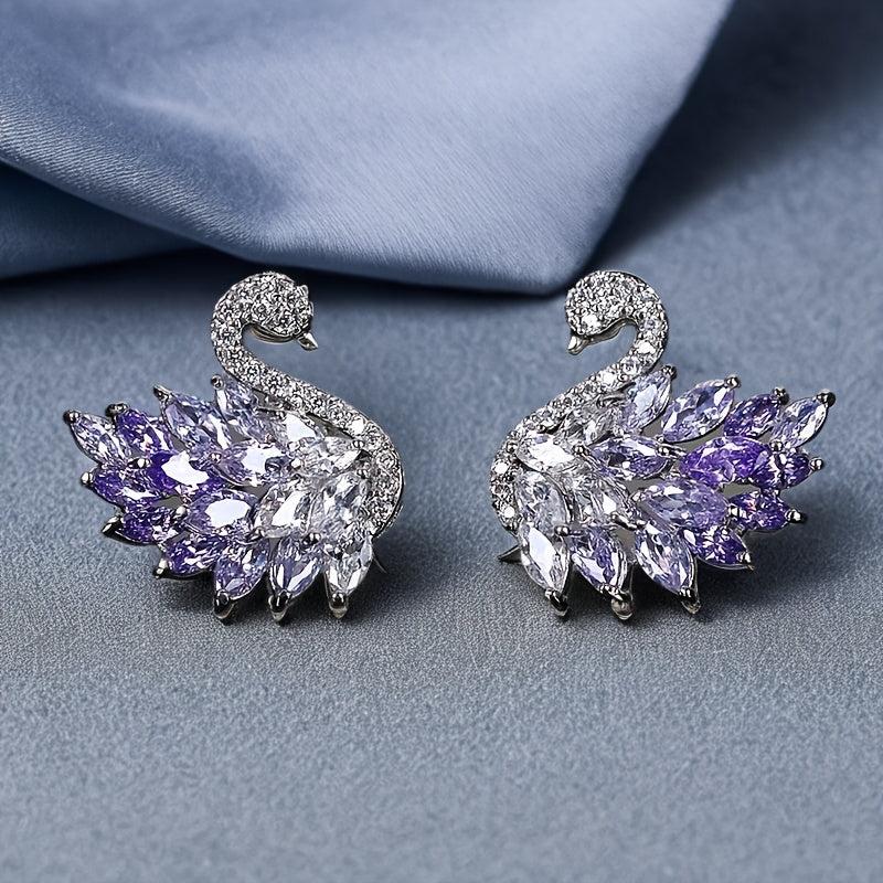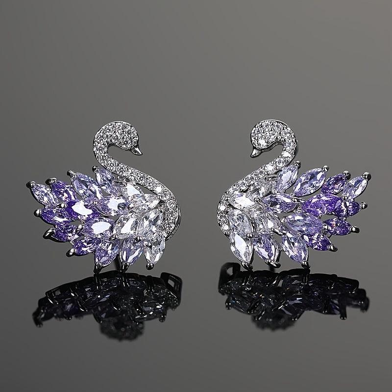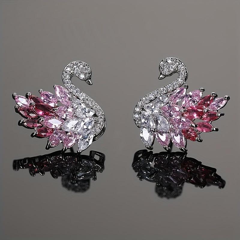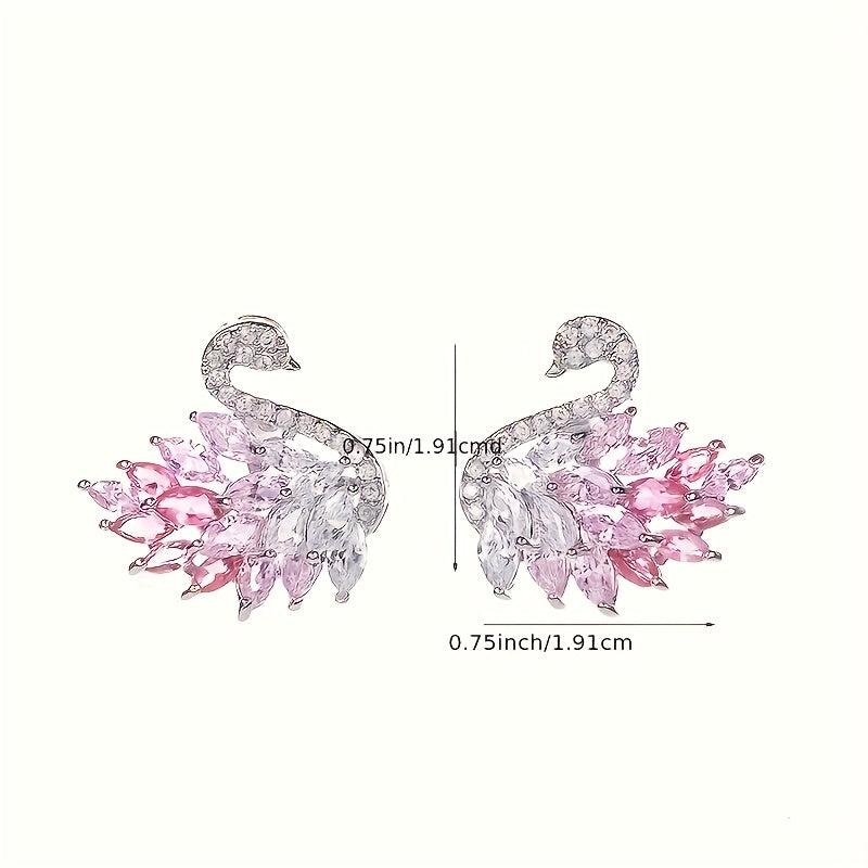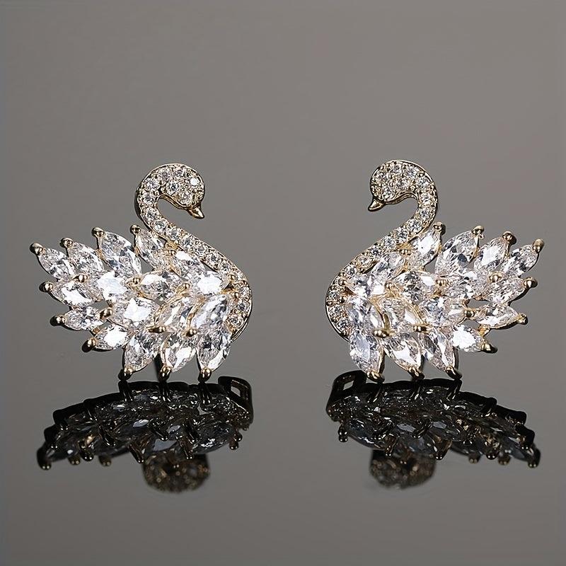 Elegant swan-shaped stud earrings featuring synthetic zirconia stones. Made from copper material, perfect for daily wear or special occasions. Ideal Ramadan gift for your loved ones.