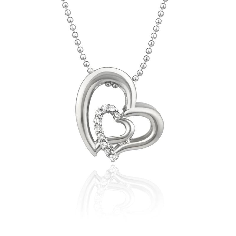 This beautiful pendant set features heart-shaped Swarovski crystals on a rhodium-plated chain, perfect for Valentine's Day.