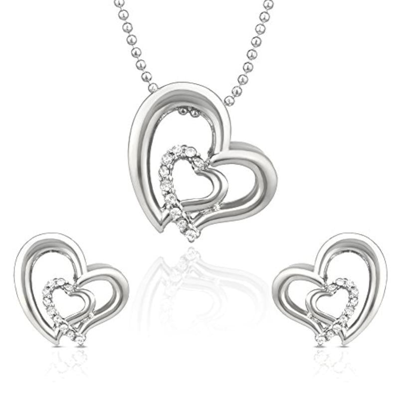 Swarovski Crystal Heart Pendant Set - Rhodium Plated