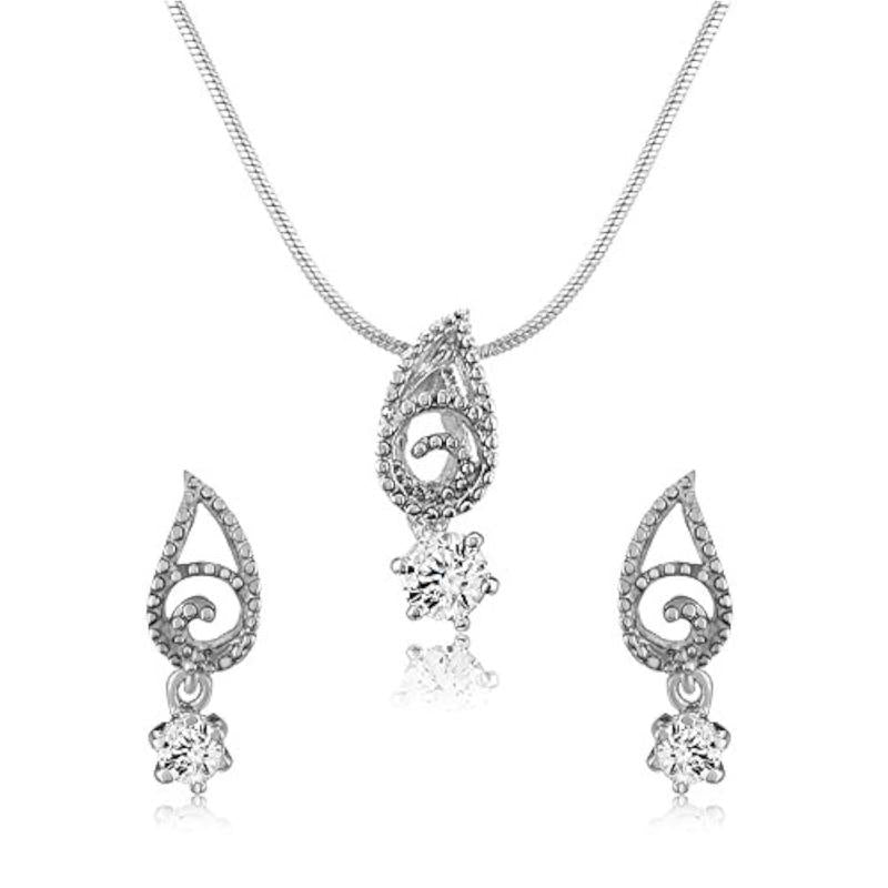 Elegant pendant set featuring a Swarovski Zirconia solitaire in a paisley drop design. Rhodium plated for durability and shine.
