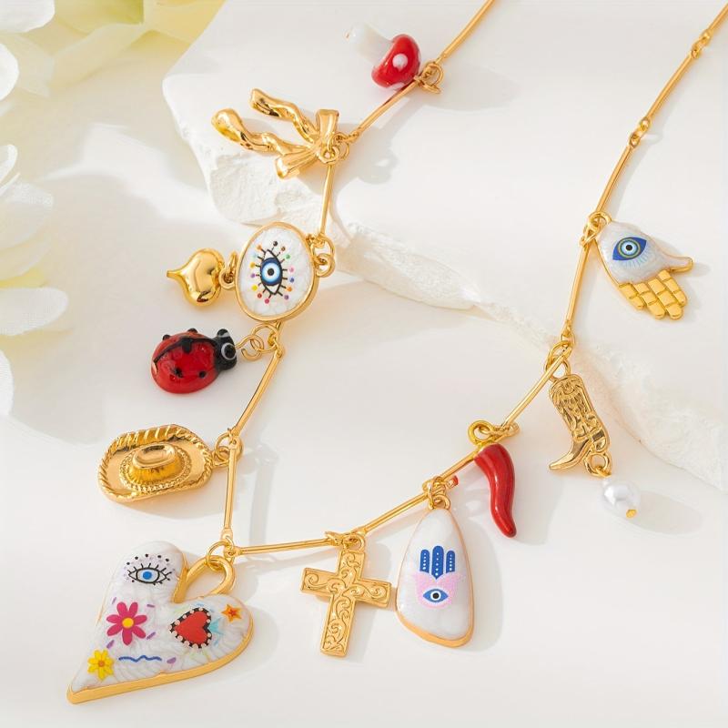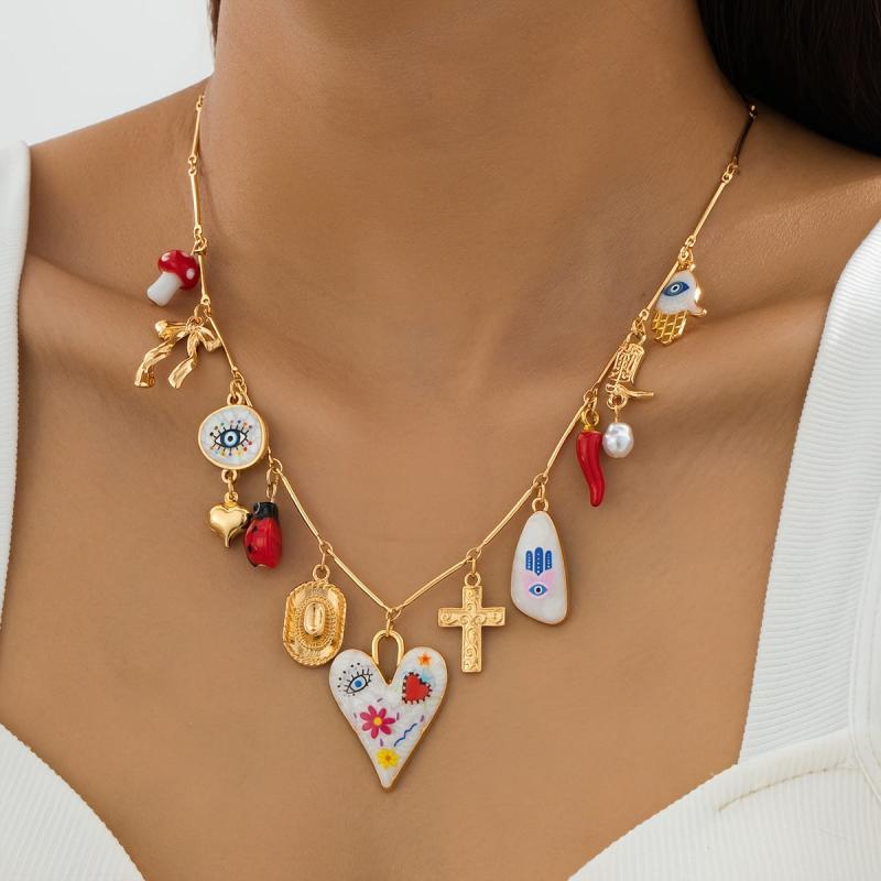 Add a touch of whimsy to your outfit with this sweet funky charm necklace. Made of zinc alloy, this jewelry piece is perfect for daily wear and holiday parties.