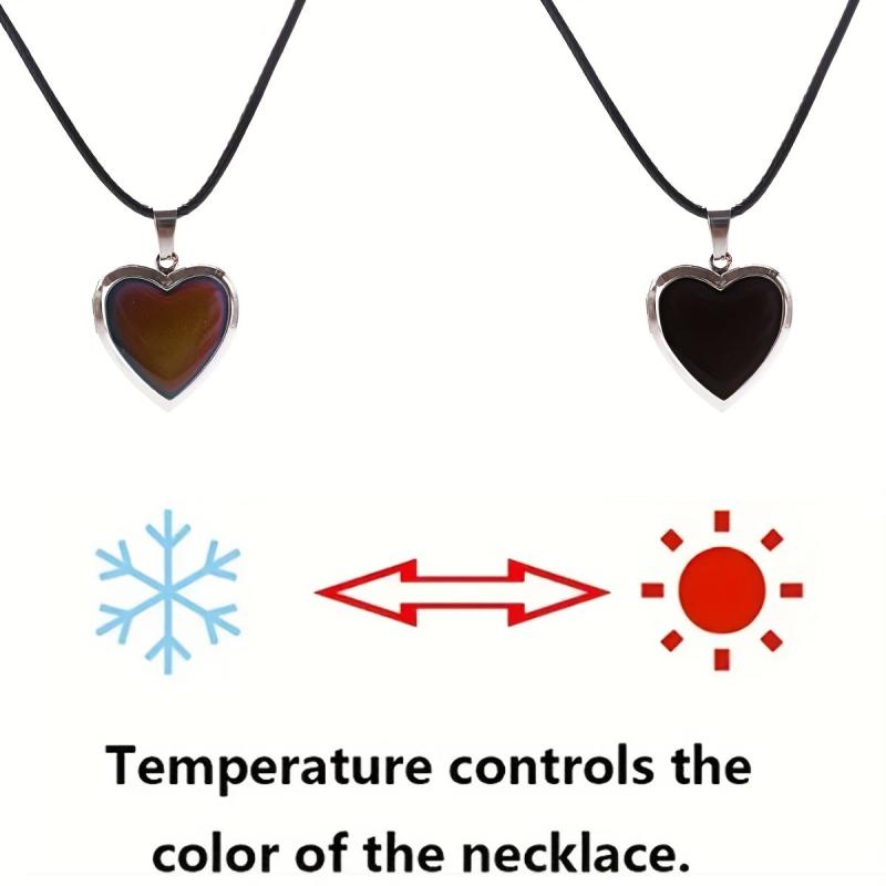 This heart pendant necklace features a unique design that changes color based on the temperature, reflecting your emotions. It is a perfect gift for both men and women to express different feelings at different moments.