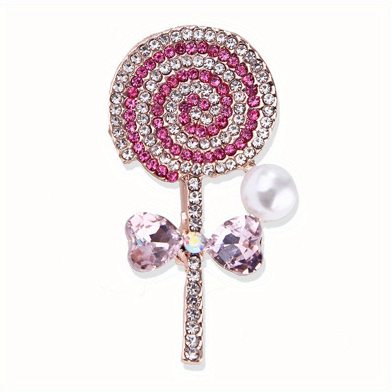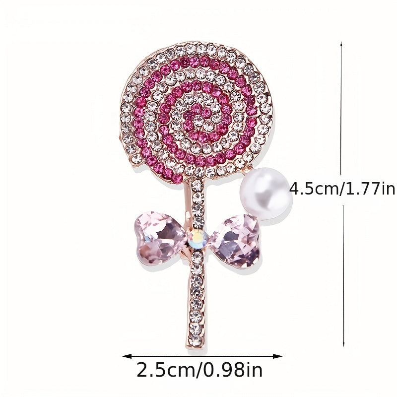 This elegant brooch corsage collar pin features a sweet lollipop design with sparkling rhinestones, making it a perfect accessory for your clothing. Add a touch of charm to your outfit with this unique piece of jewelry.