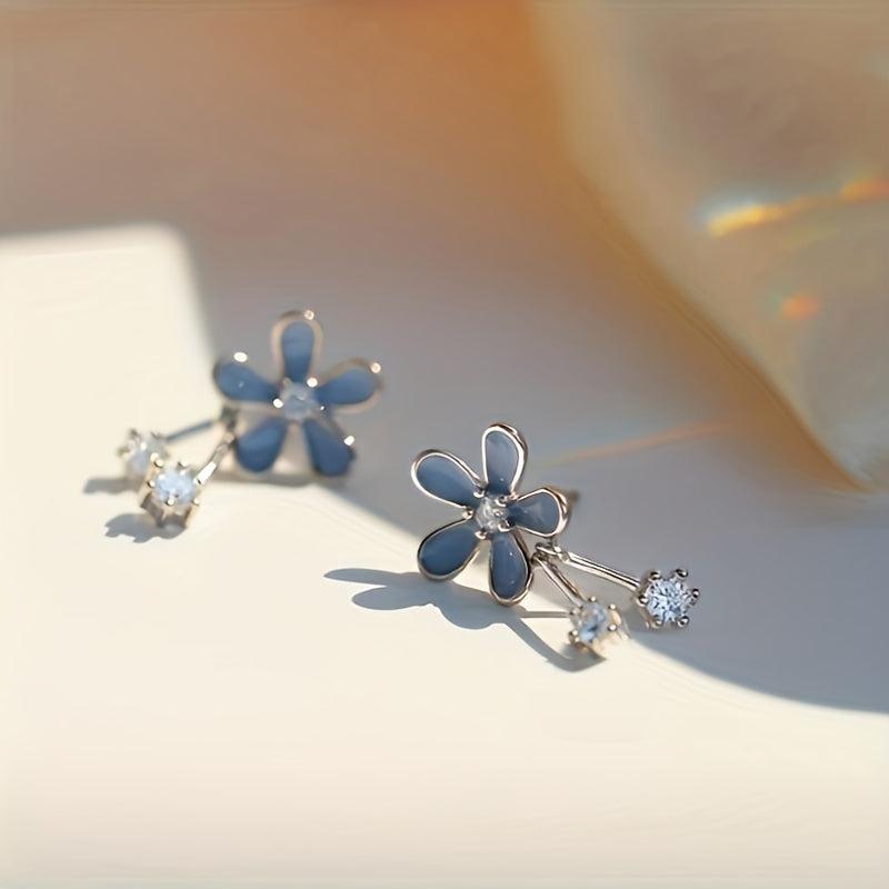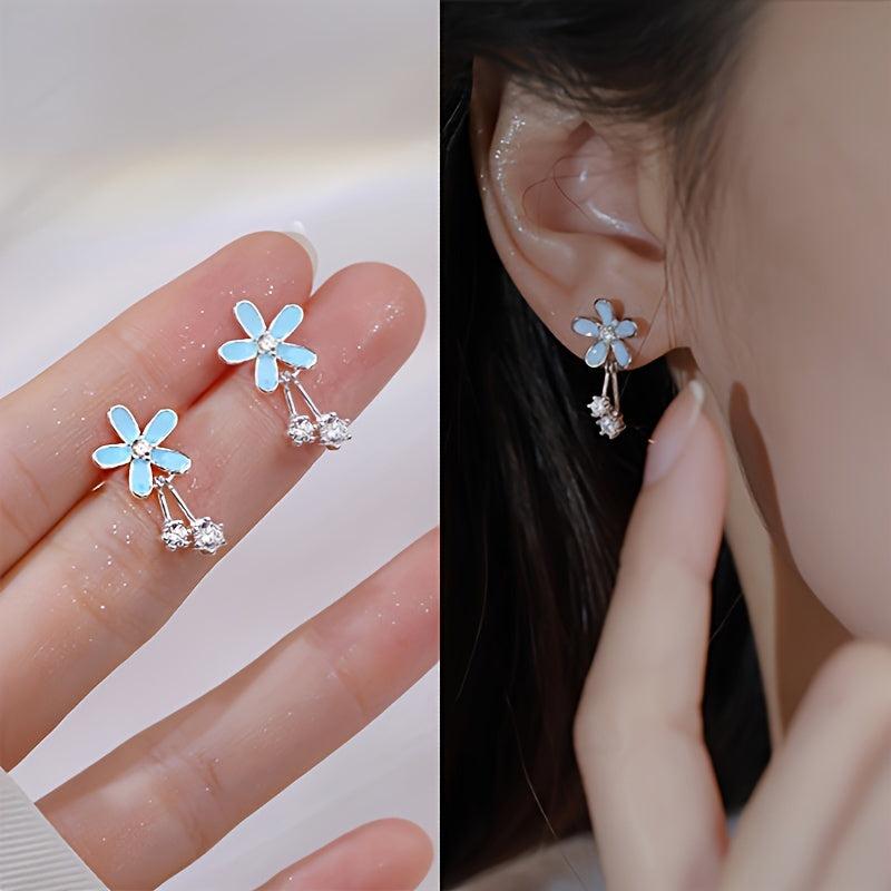 These adorable flower stud earrings are perfect for a sweet and charming look on your next date. Made of high-quality alloy with rhinestones inlaid, these earrings add a touch of sparkle to your outfit.
