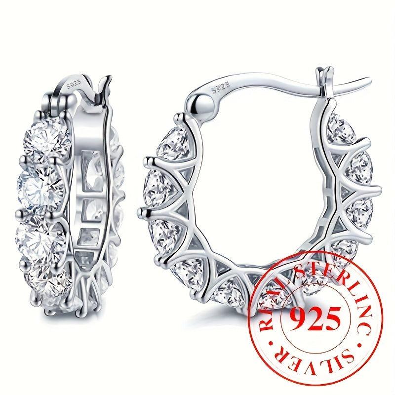 Elegant hoop earrings with sparkling synthetic zirconia stones in a 925 sterling silver setting. Perfect for special occasions like weddings, engagements, parties, and anniversaries.