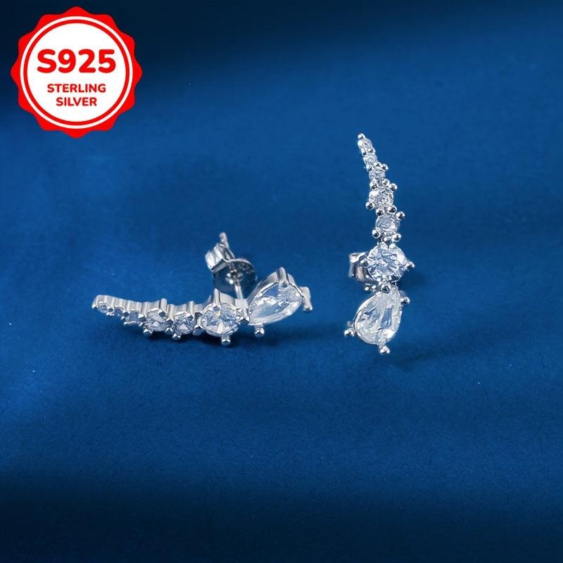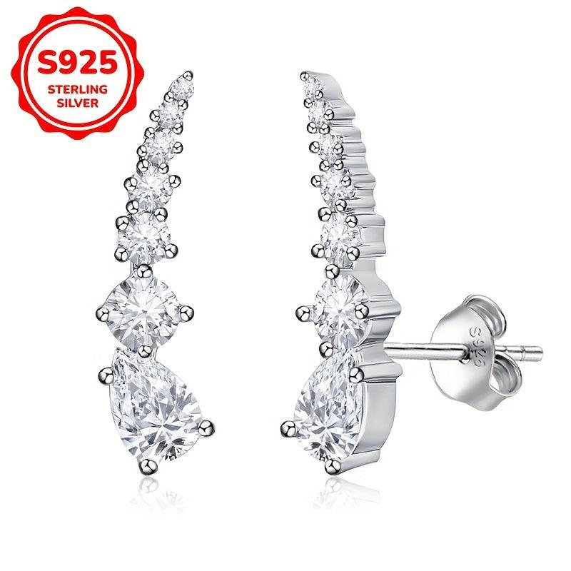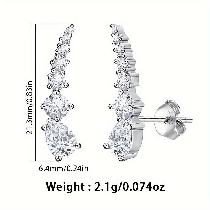 These stylish earrings feature seven synthetic zirconia water drop stones that exude individuality and temperament. They weigh 2.1 grams.