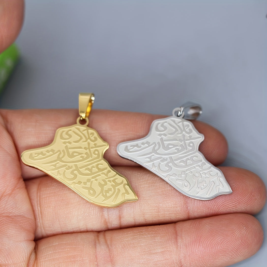 This Syria map keychain features stainless steel construction with an engraved Arabic alphabet verse. A stylish and meaningful accessory for men.