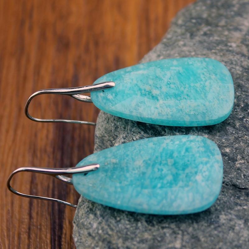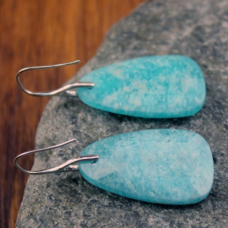 These stunning teal Amazonite earrings are perfect for daily or vacation wear. Made with natural stone and copper hooks, they are free from nickel plating.