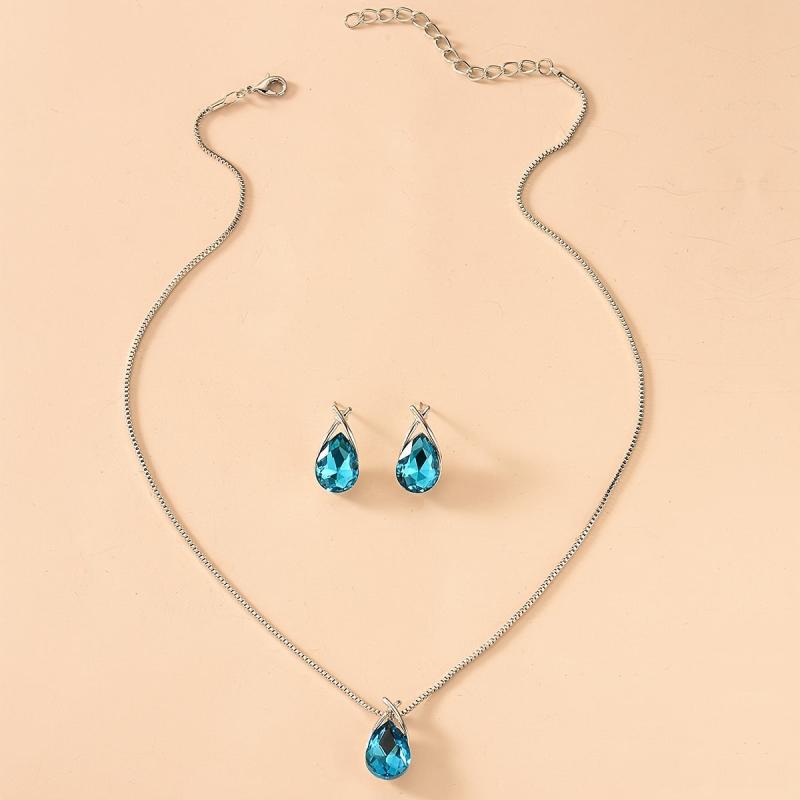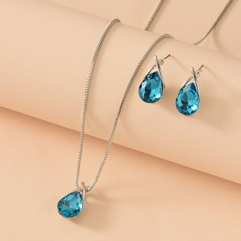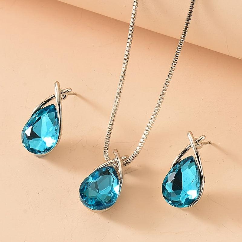 Enhance your everyday look with this elegant Teardrop Crystal Pendant Necklace and Earrings Set. Made from zinc alloy and artificial crystal, it is perfect for daily wear.