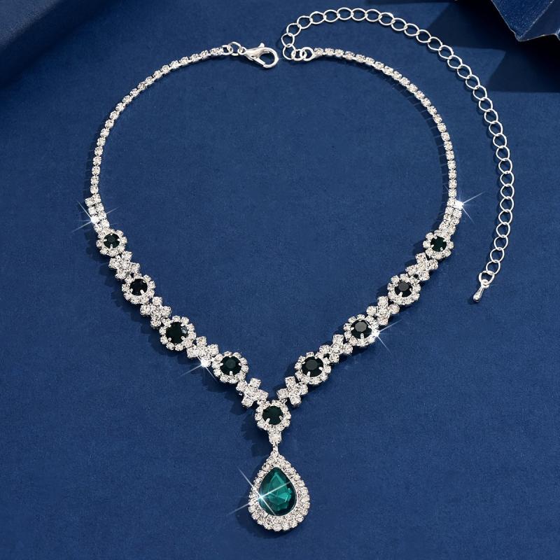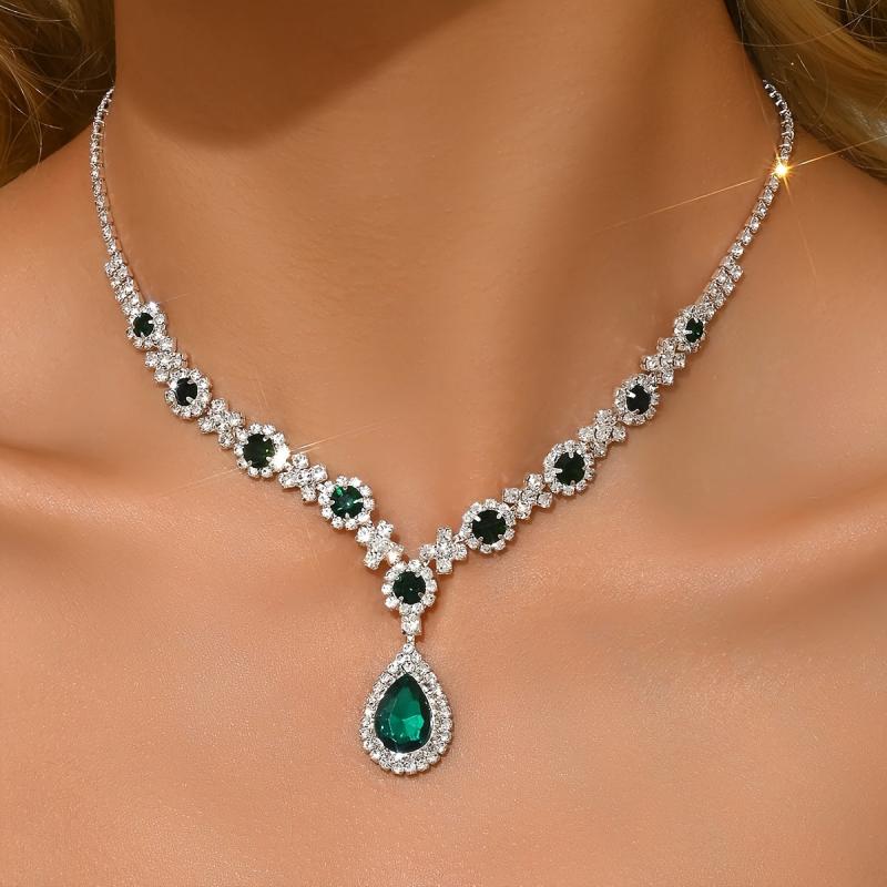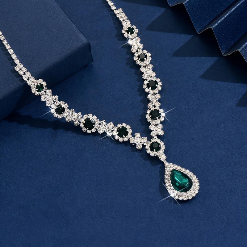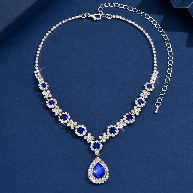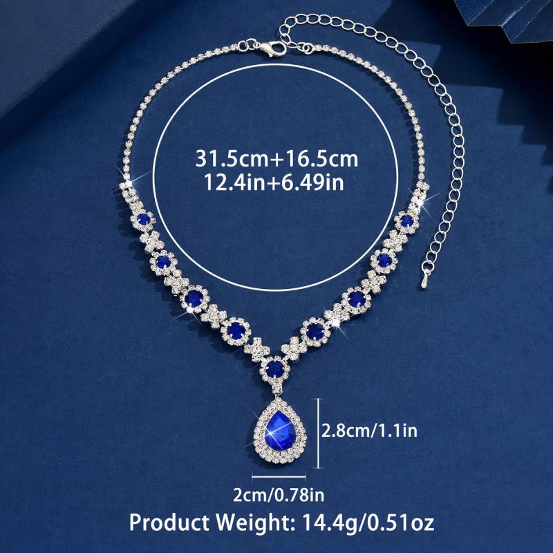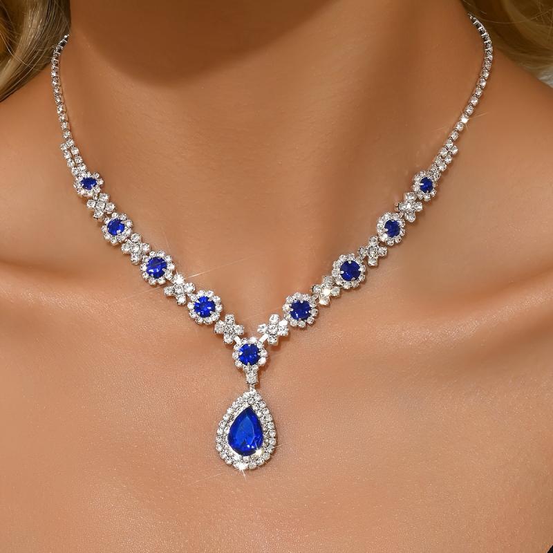 Elegant synthetic gemstone teardrop necklace perfect for weddings. This set makes a great accessory and gift for women.