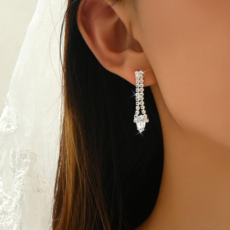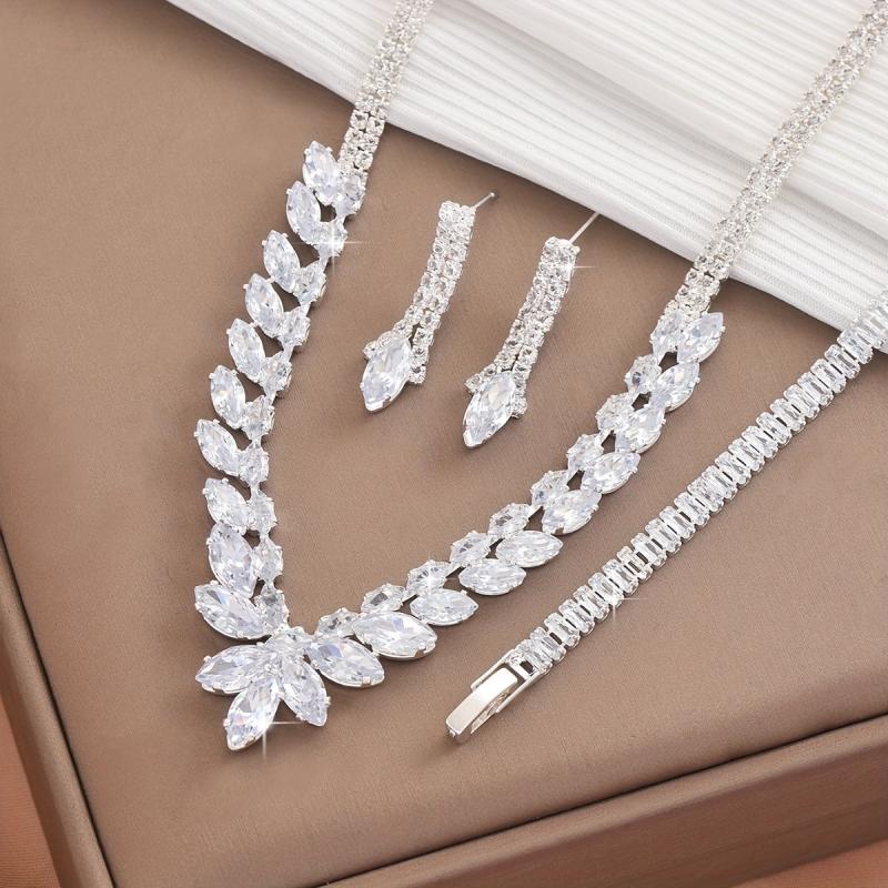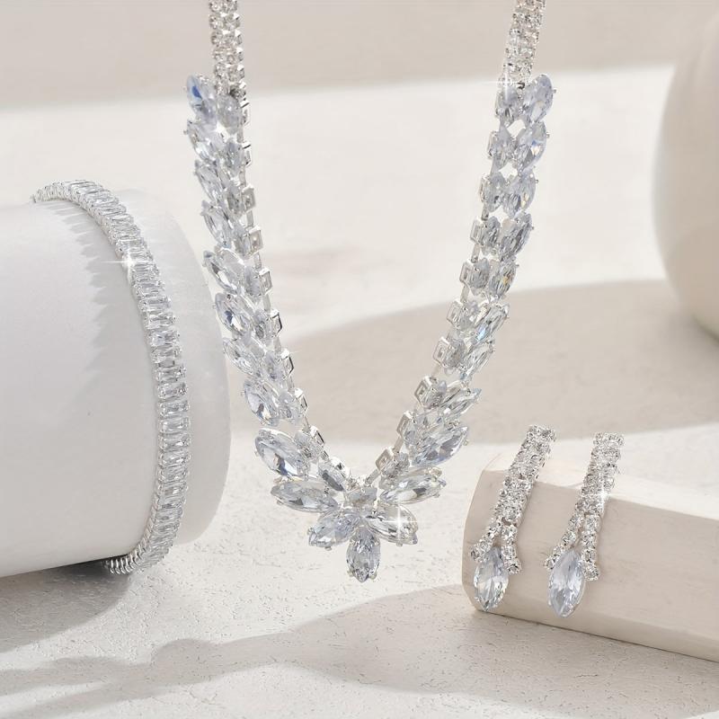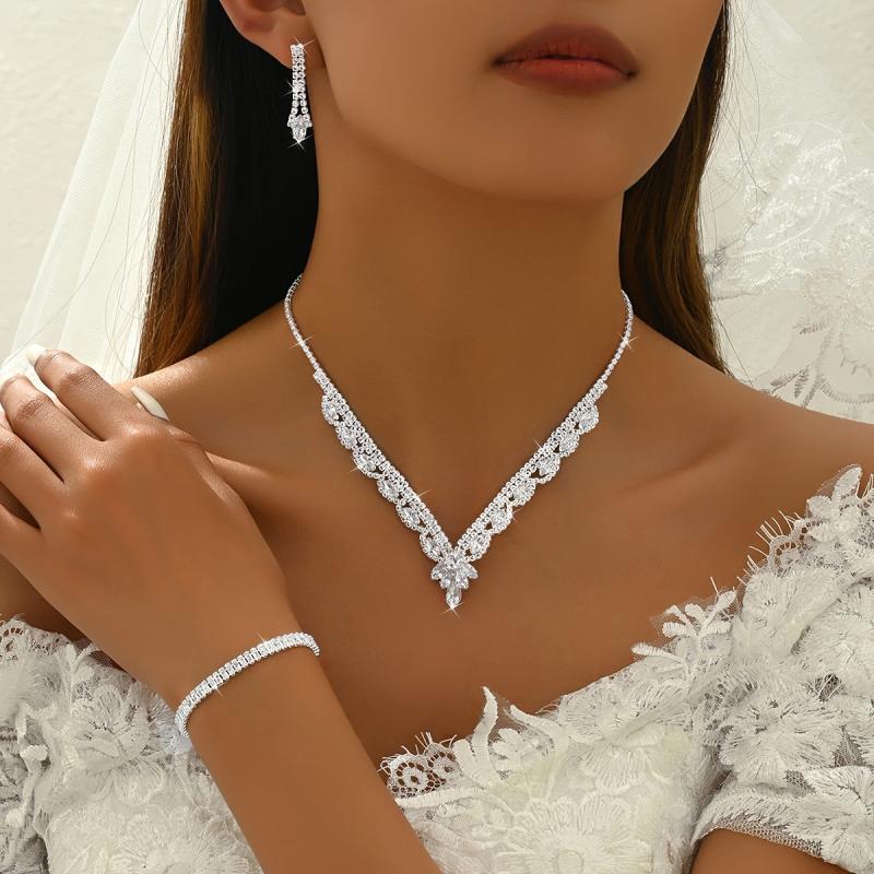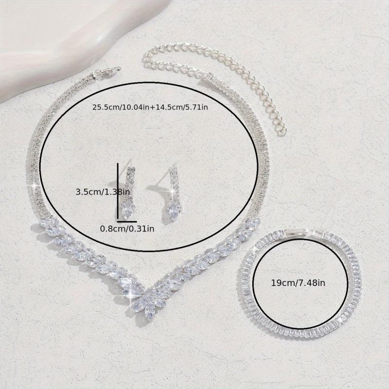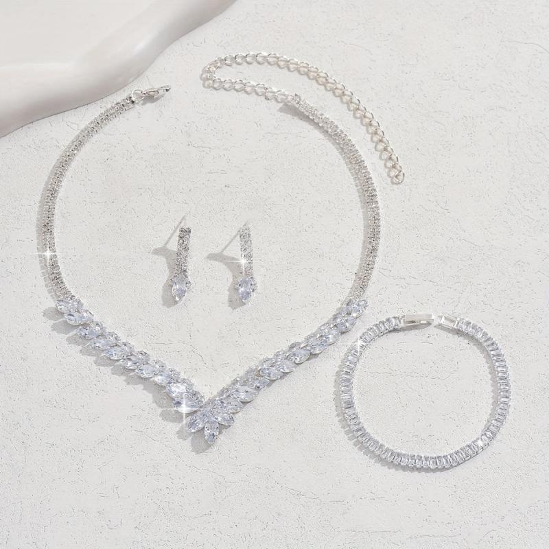 This set includes 3 teardrop necklaces made of alloy material with synthetic zirconia in a silver-plated style. Perfect for parties and daily wear.