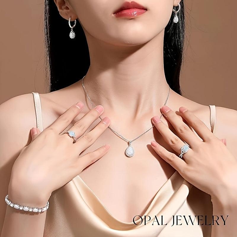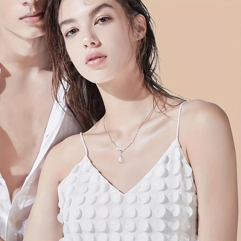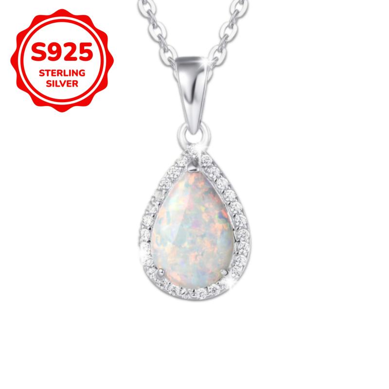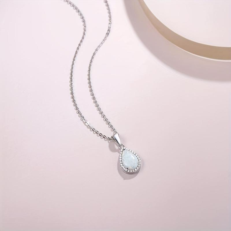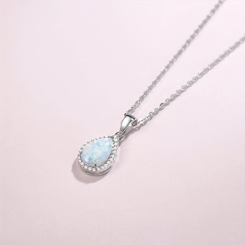 Elegant S925 silver pendant necklace featuring a teardrop opal and 5A synthetic cubic zirconia. Perfect for everyday wear and hypoallergenic.