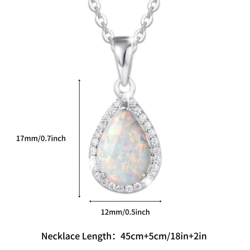 Teardrop Opal Pendant Necklace with CZ, Hypoallergenic, Gift for Her