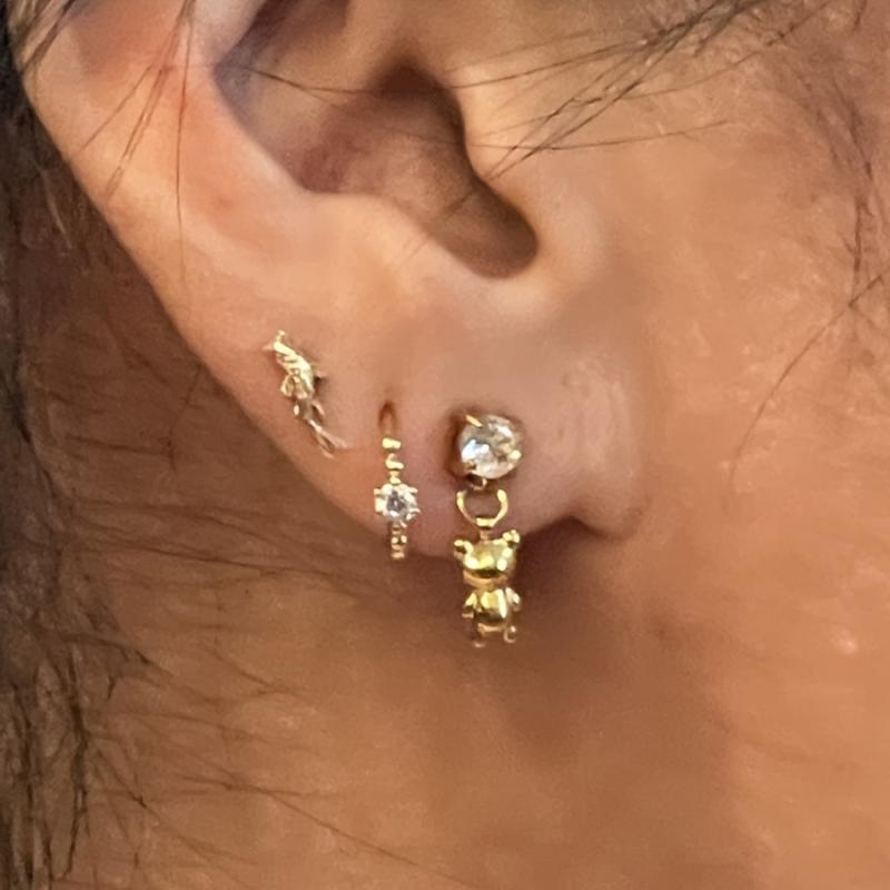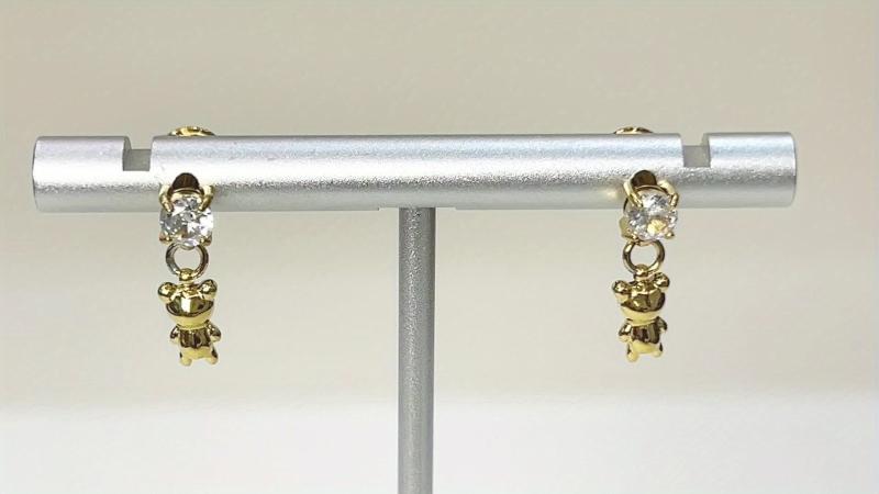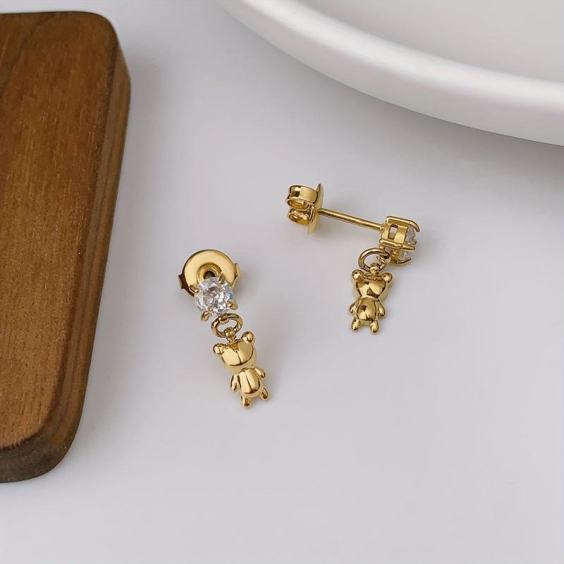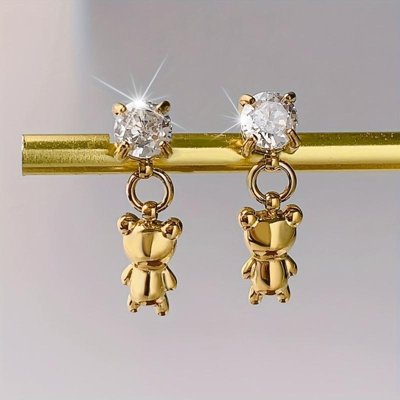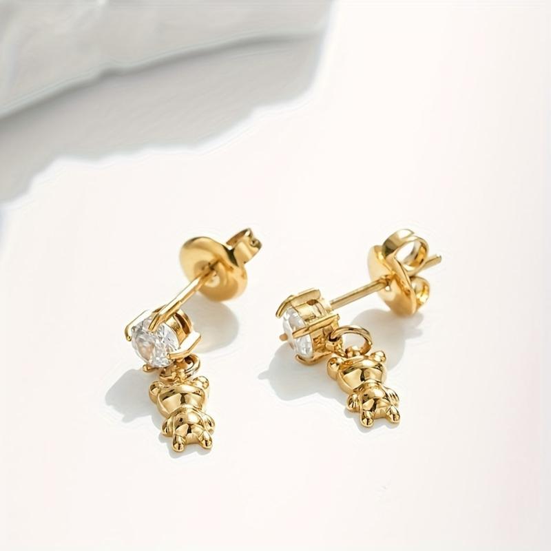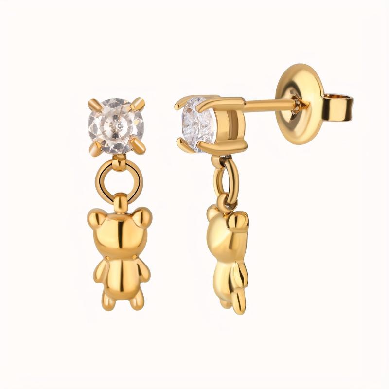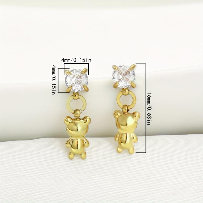 Add a touch of charm to your outfit with these adorable teddy bear earrings featuring a cubic zirconia pendant. Crafted from 18K plated stainless steel, these dangle earrings are perfect for everyday wear.