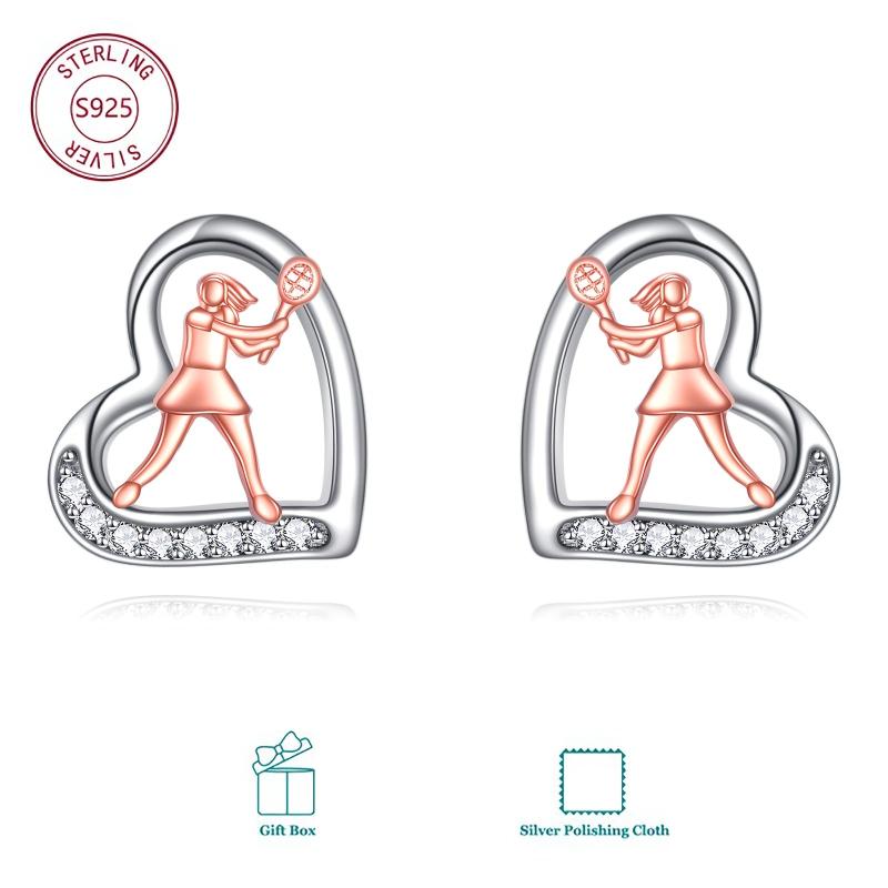 These tennis earrings are made of high-quality 925 sterling silver, featuring a heart-shaped design. Perfect for tennis enthusiasts and sports lovers.