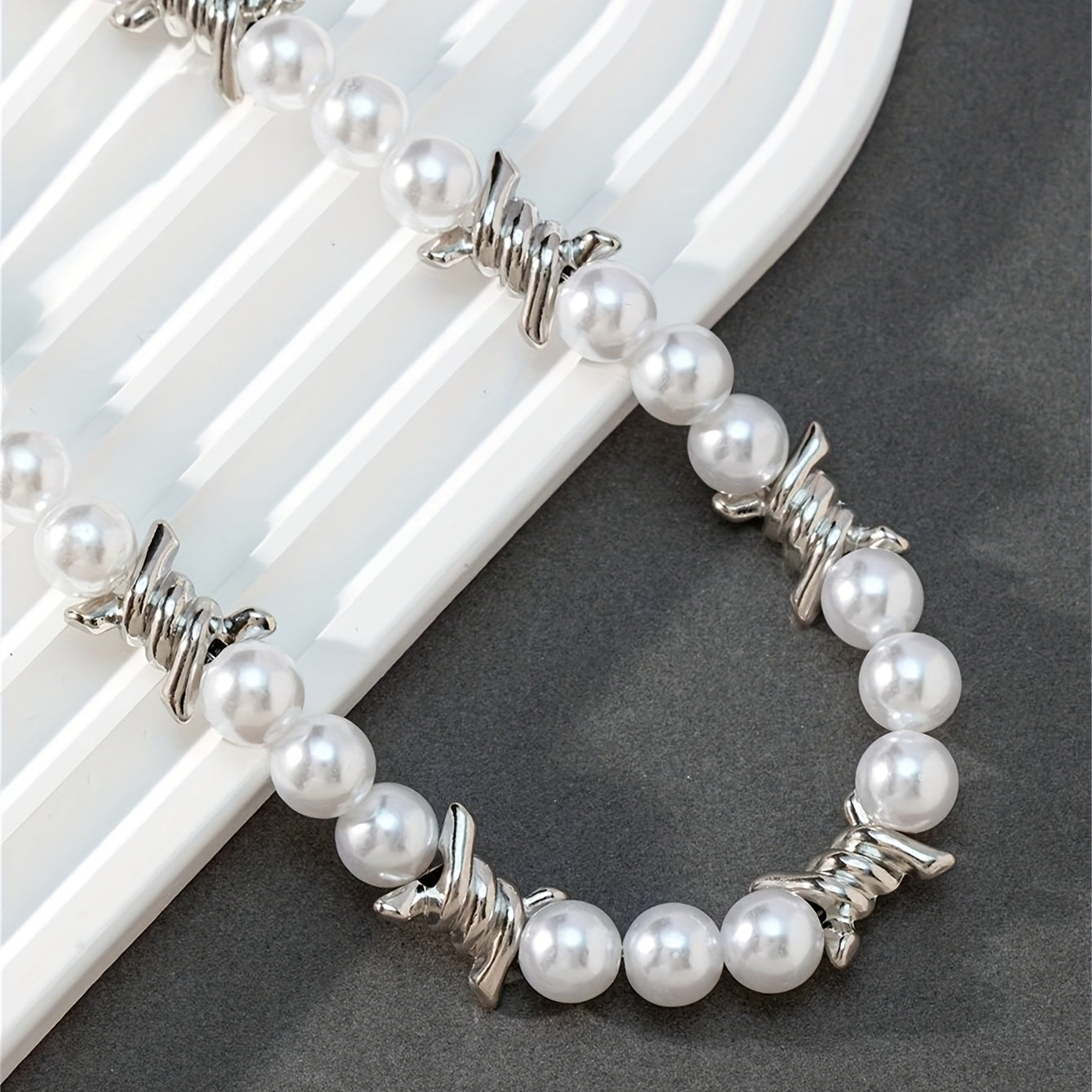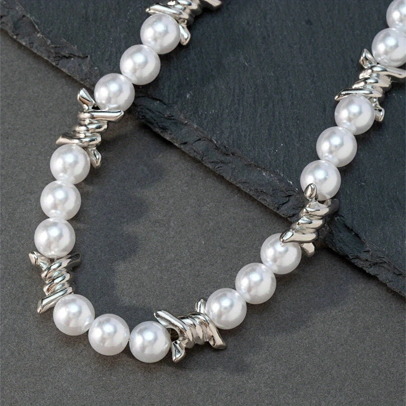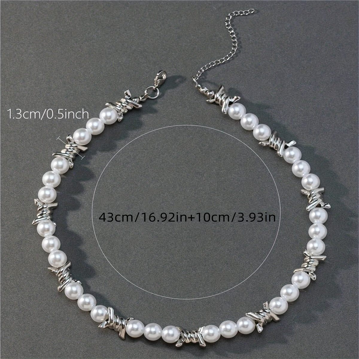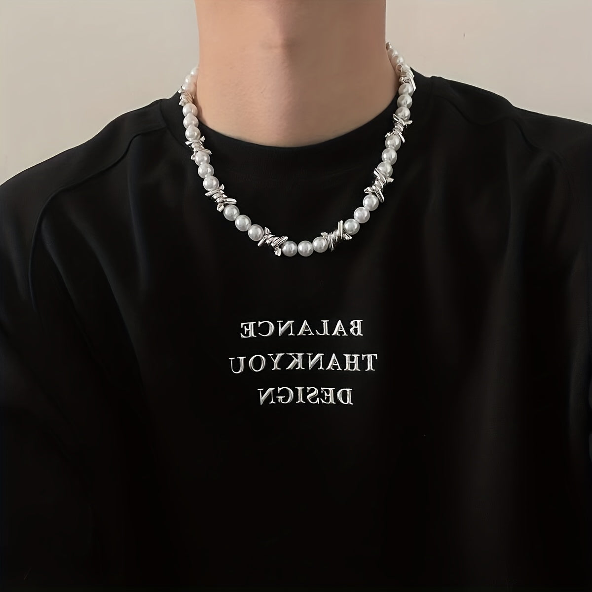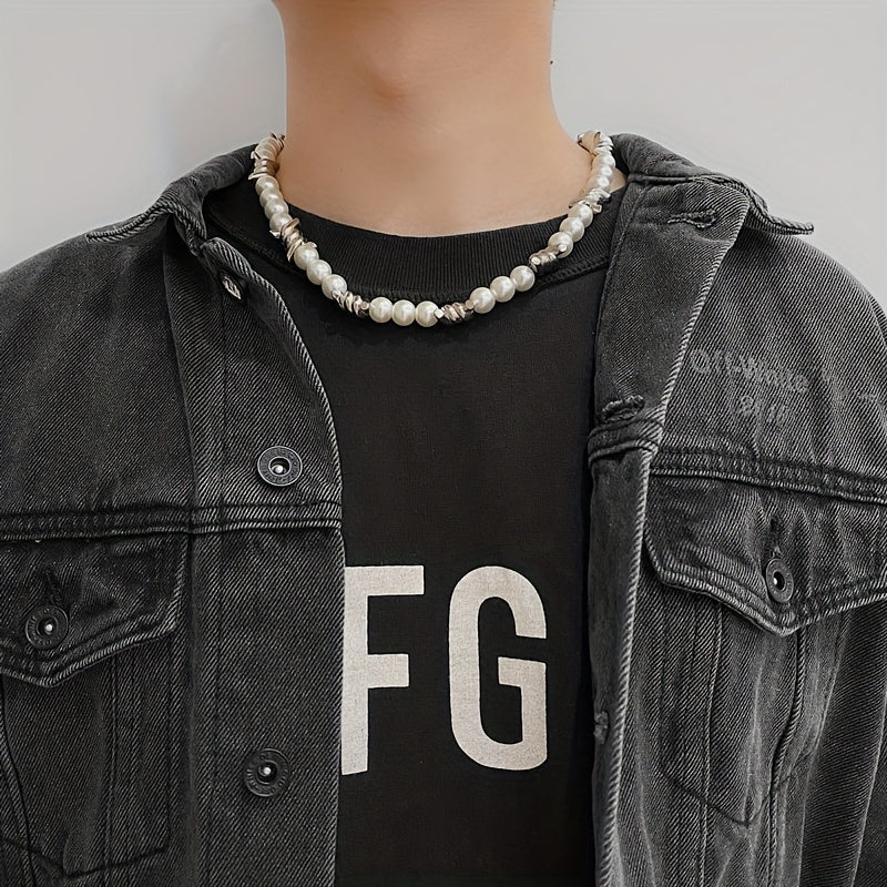 This stylish choker necklace features thorns stitching and pearls, perfect for men's fashion.