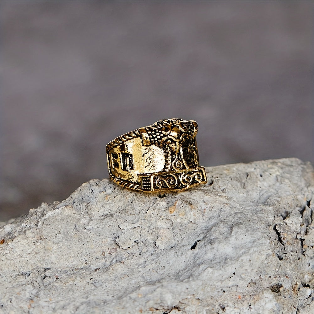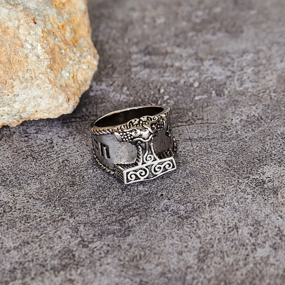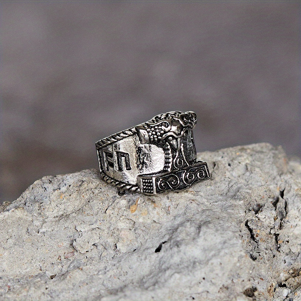 This vintage finger ring is inspired by Nordic Viking culture, featuring Thor's Hammer symbol for good luck. It's a unique piece of jewelry that adds personality to your look.