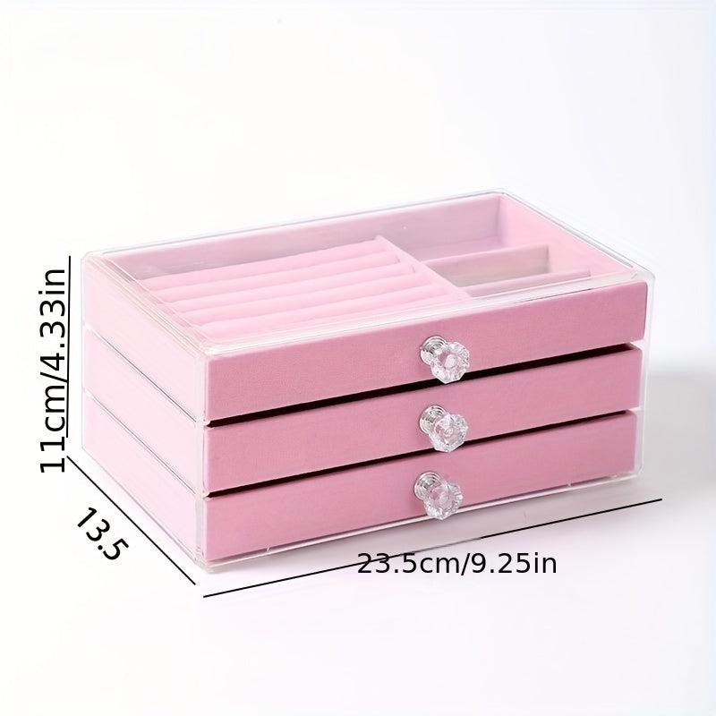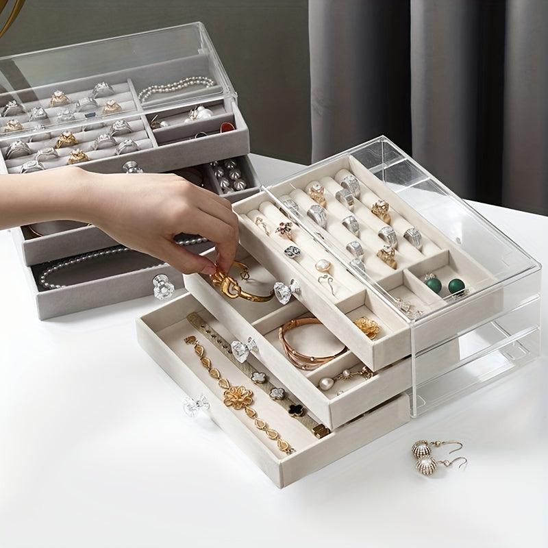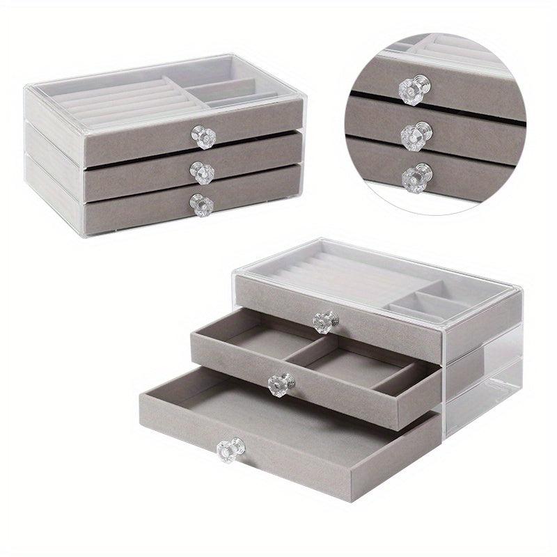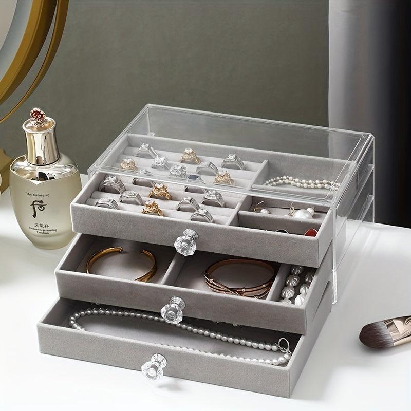 Keep your earrings, bracelets, and jewelry organized with this three-layer transparent drawer storage box.