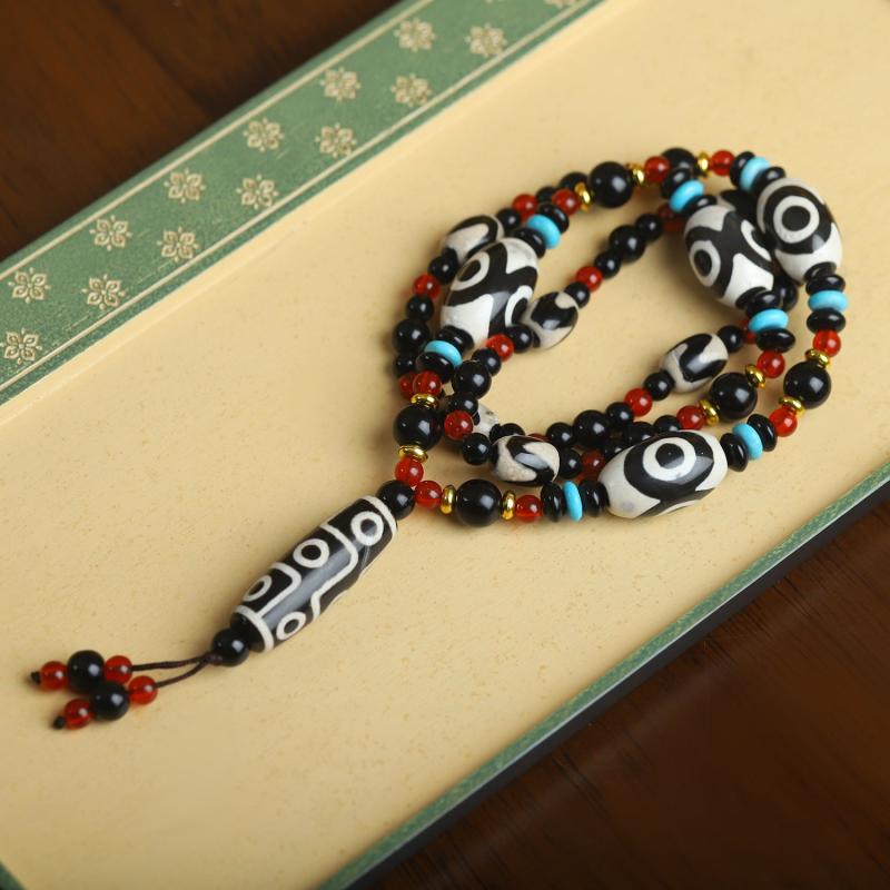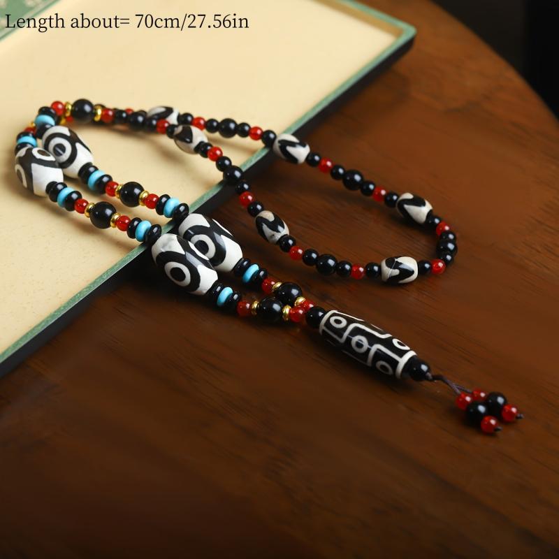 This avant-garde style Tibetan agate bead necklace is a spiritual protection pendant that makes a perfect gift for family and friends. It is inspired by Chinese ethnic designs and exudes a unique charm.