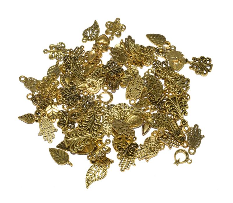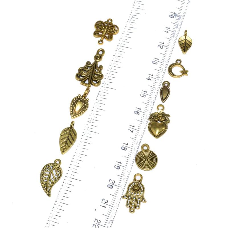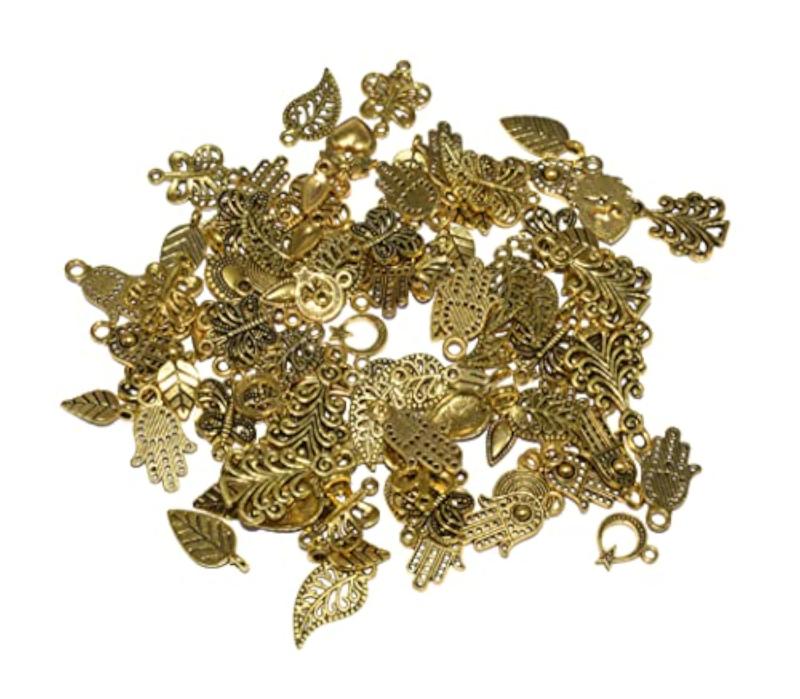 Explore your creativity with this random mix of 160 to 180 smooth Tibetan metal charms pendants, perfect for bracelet, necklace, earring, and pendant projects.