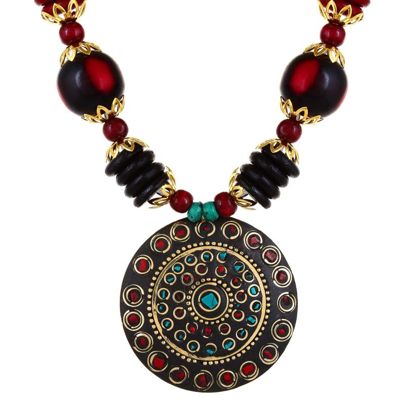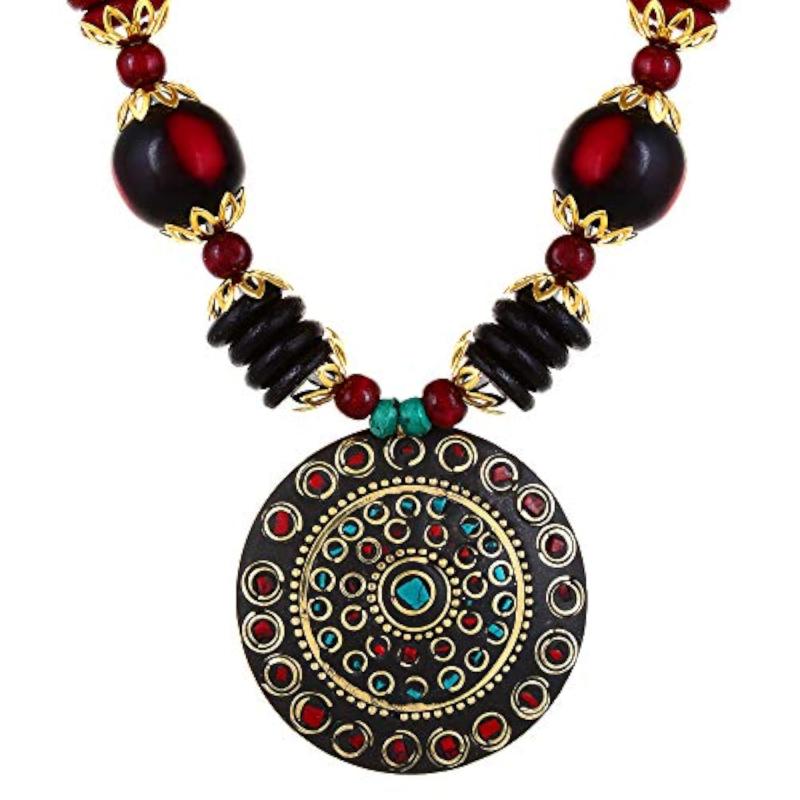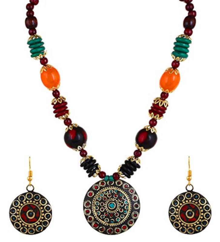 This stunning jewellery set includes a Tibetan pendant necklace with matching earrings, perfect for adding a touch of tribal elegance to any outfit. Makes a great gift for a loved one.