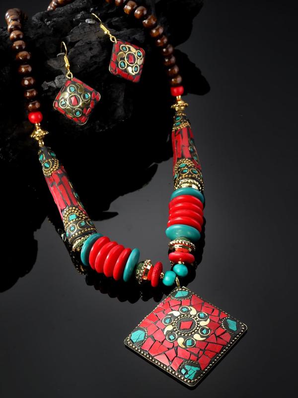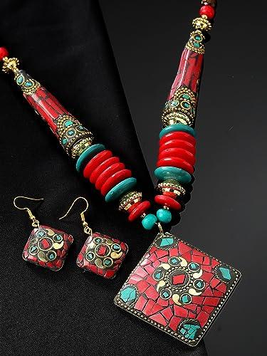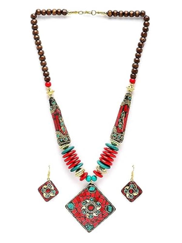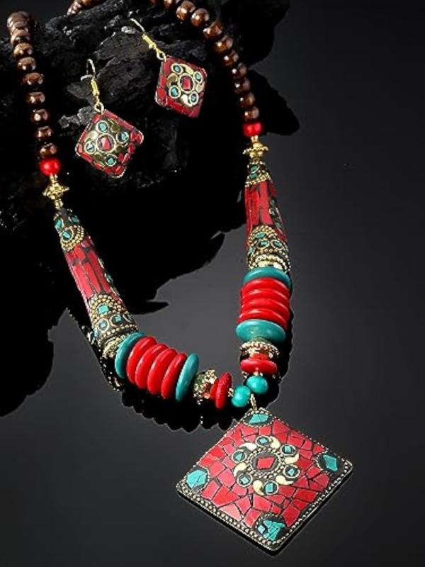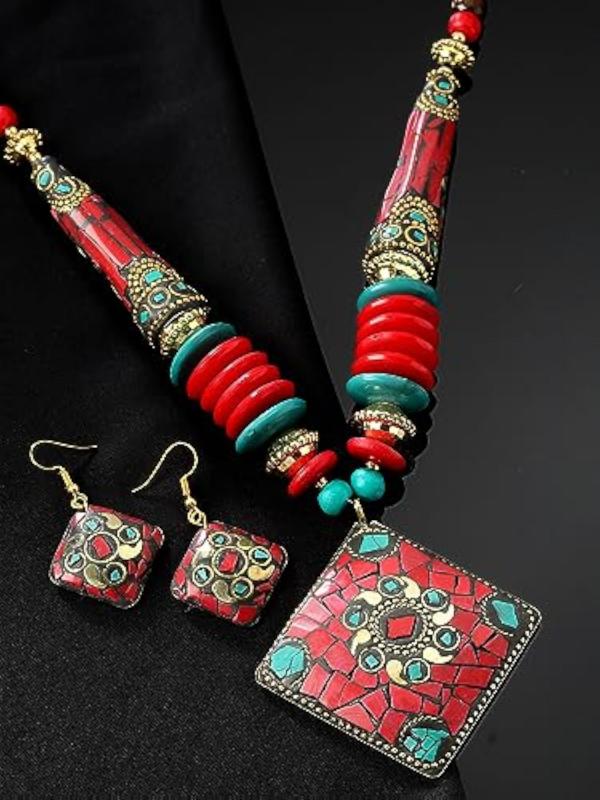 Explore the beauty of Tibetan culture with this handmade pendant necklace set. Crafted with traditional Tibetan design, this set is a unique addition to your jewelry collection.