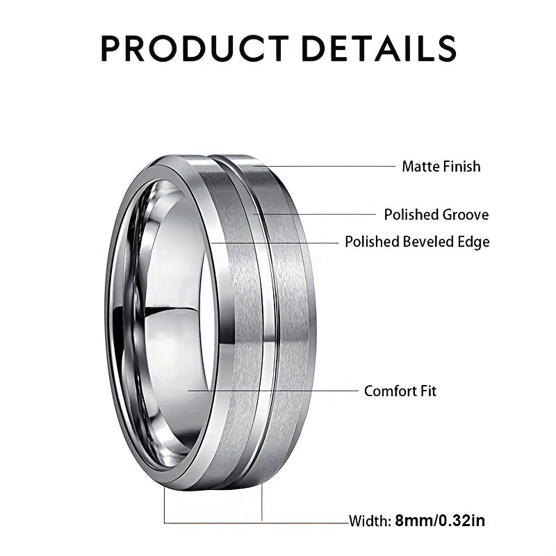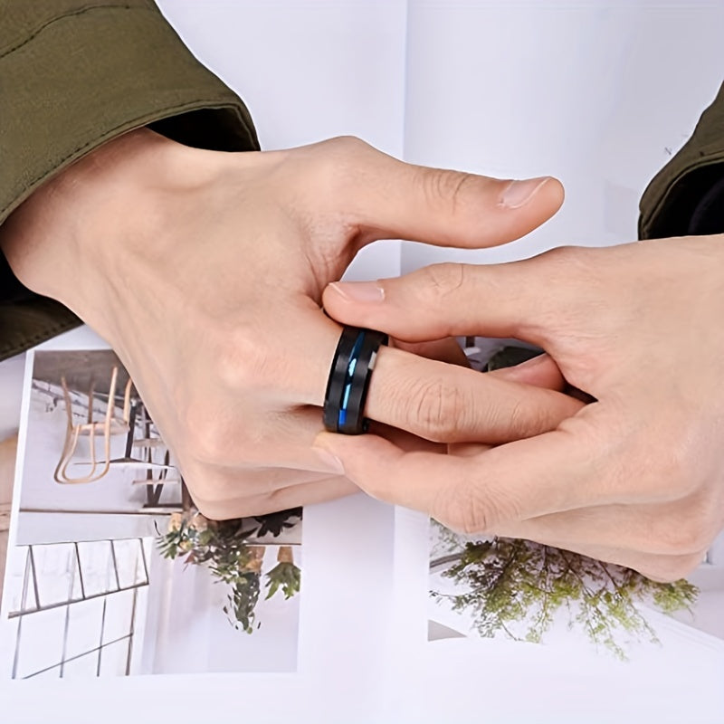 This spinner ring is crafted from titanium stainless steel for durability and style. It features an anxiety relief design and is perfect for everyday wear or special occasions.