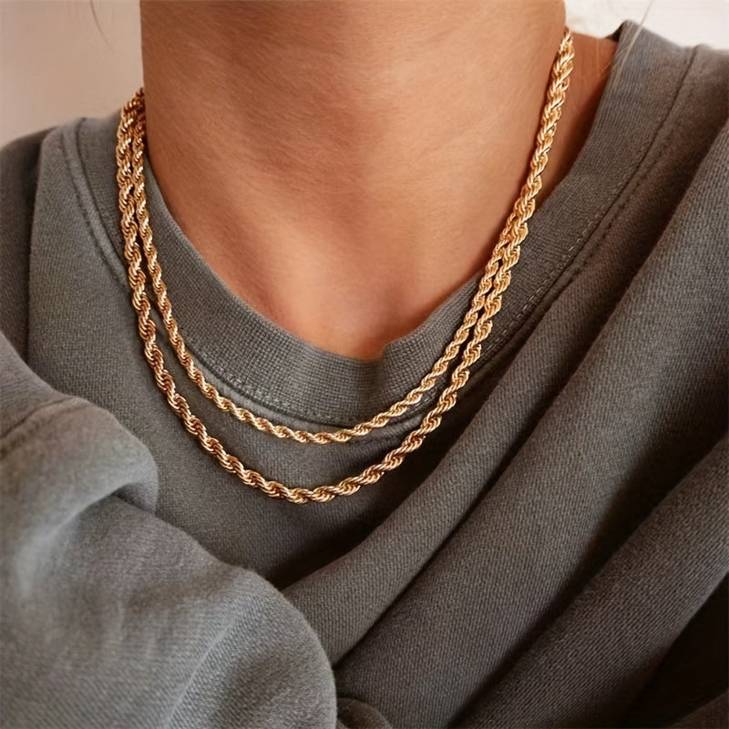 Add some edgy style to your look with this twisted chain necklace made of titanium steel. Perfect for both men and women who love punk and hip hop fashion.