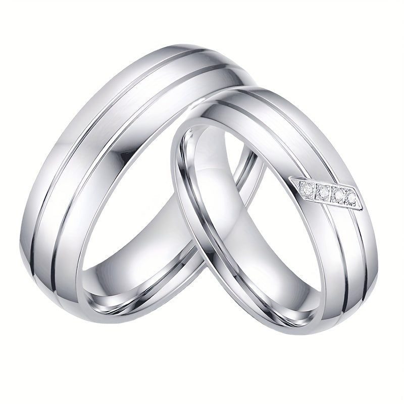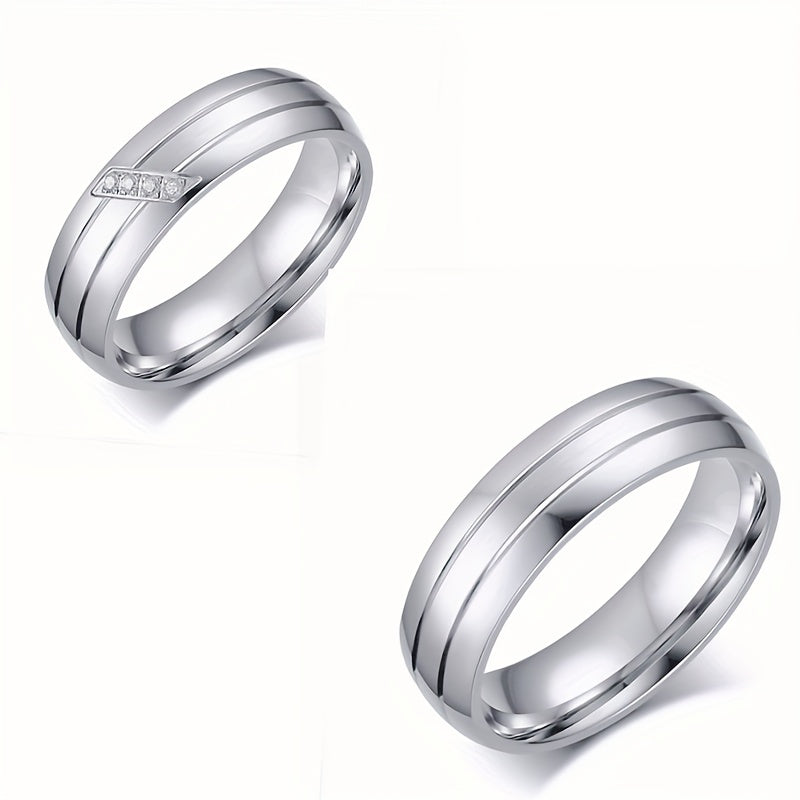 This elegant couple ring set features two rings made of titanium steel with artificial diamond accents. Perfect for expressing love and commitment.