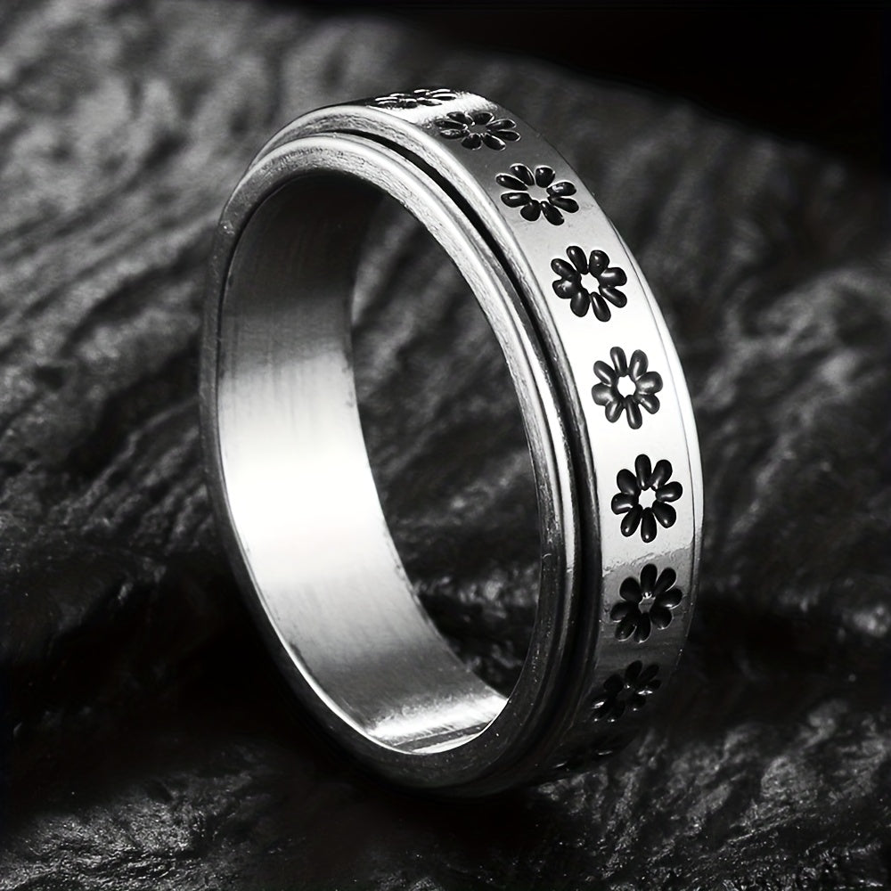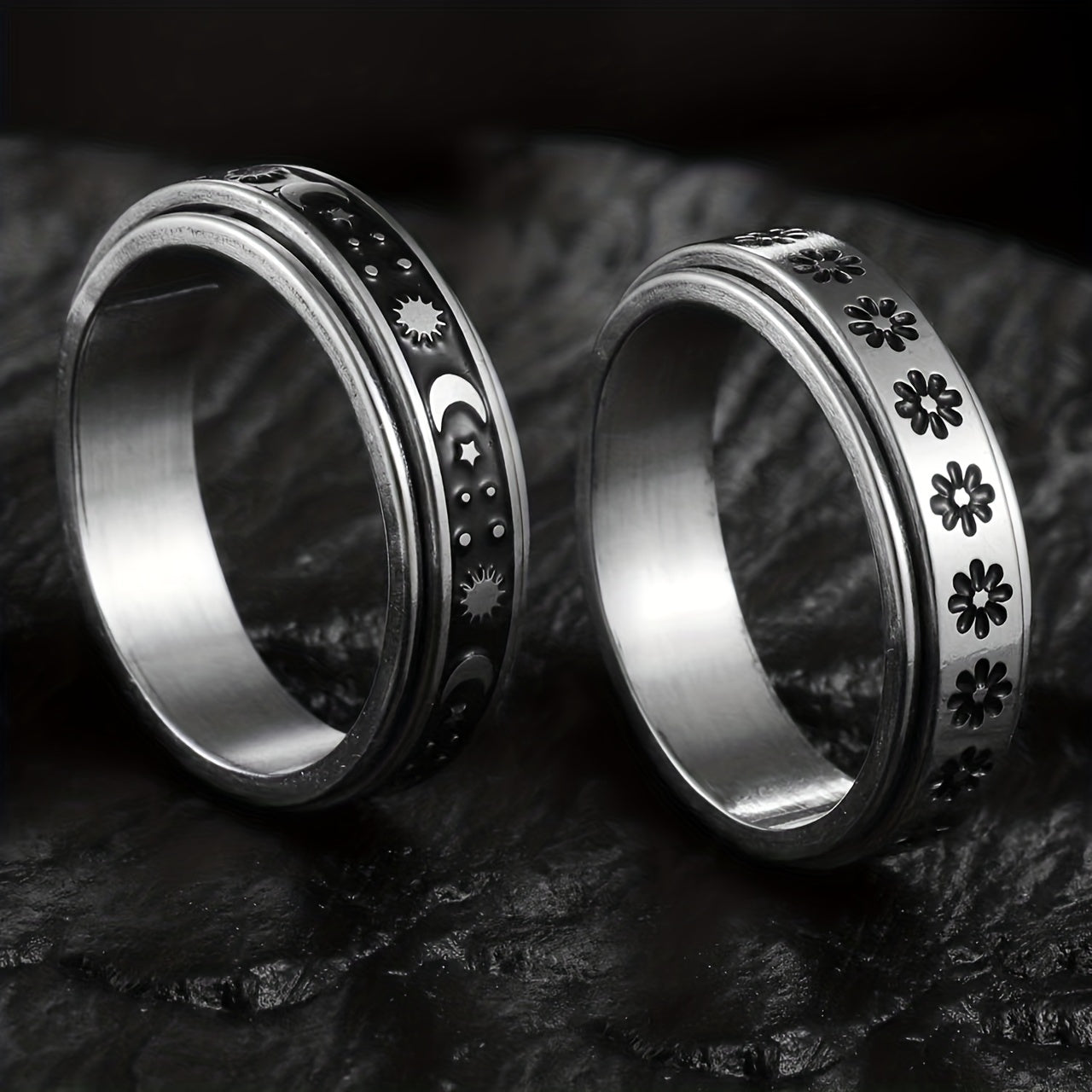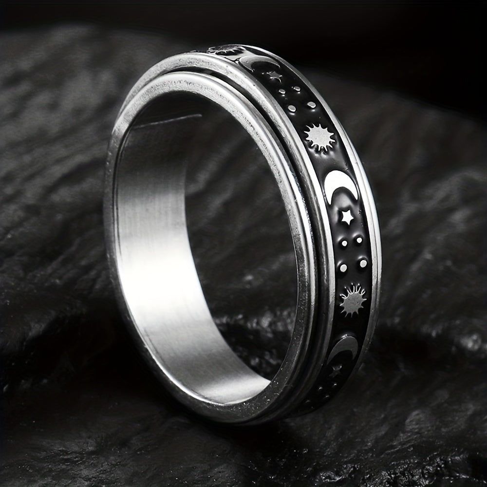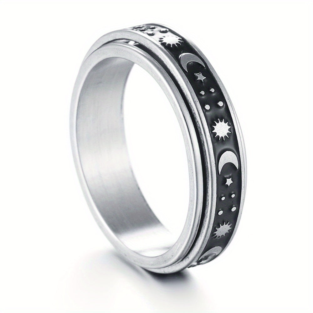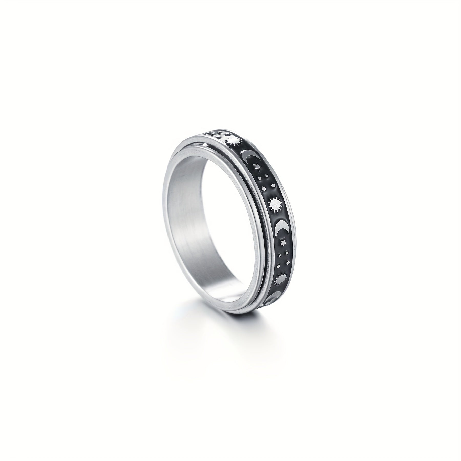 This titanium steel ring features a double layer design with a stylish star and moon pattern. It's a unique and trendy accessory for men.