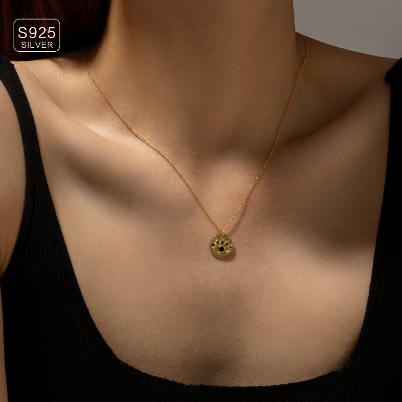 Add a touch of elegance to your outfit with this 18K gold plated necklace featuring a synthetic zirconia mosaic round pendant. Perfect for parties or vacations, this piece is sure to elevate your look.