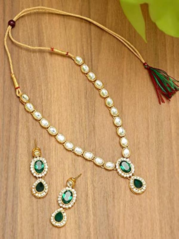 Exquisite set with kundan & stones, perfect for weddings. Enhance your beauty.